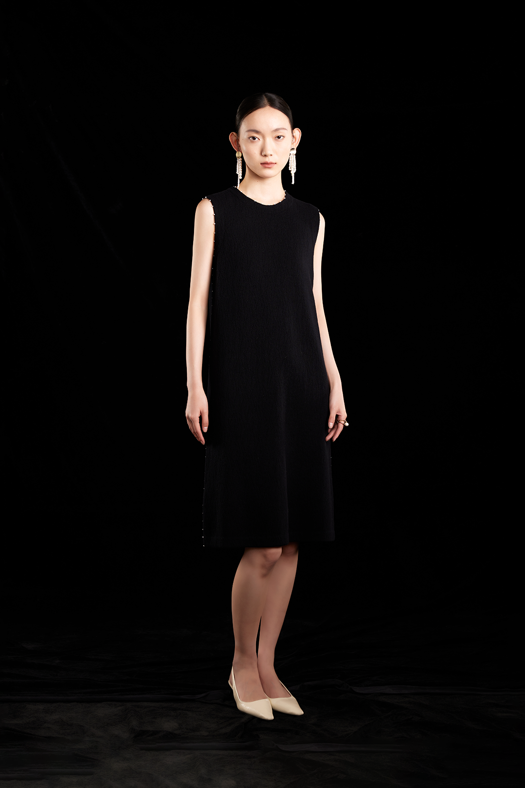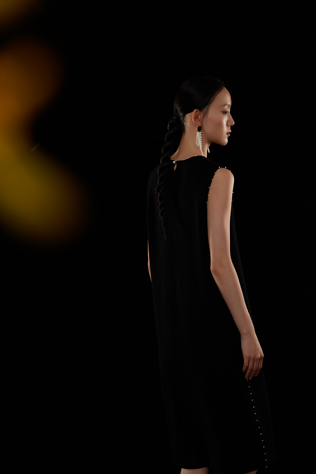 高支纱珠饰背心连衣裙 / 黑 / H91065