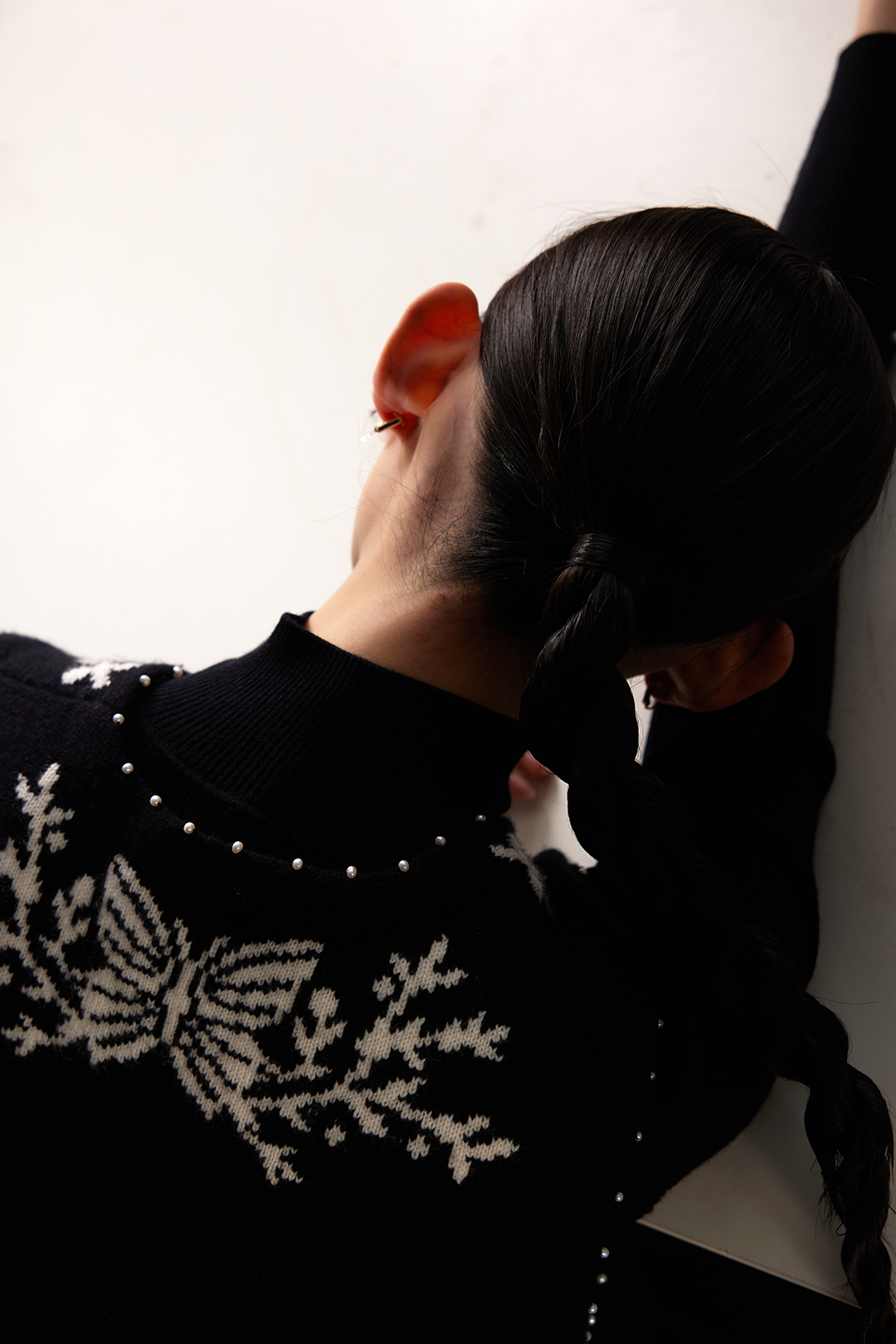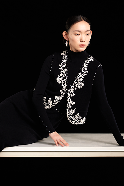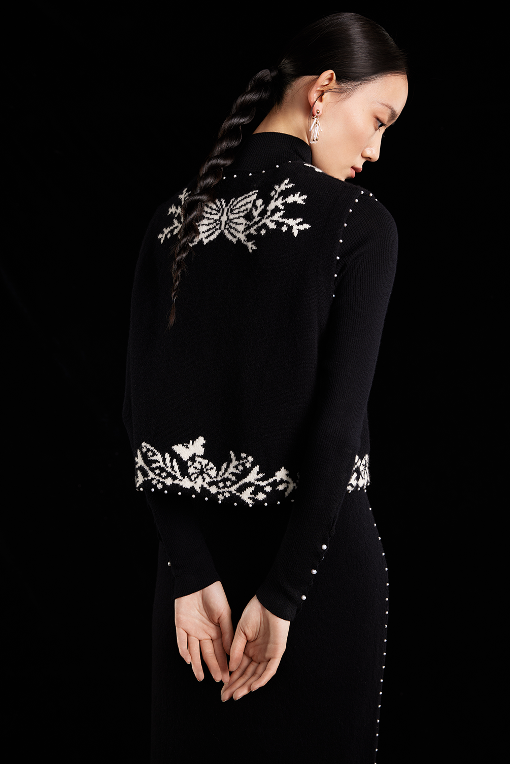 精纺羊绒半高领珠饰女衫 / 黑 / H91059 珠饰嵌花女开背 / 黑 / H91099-1