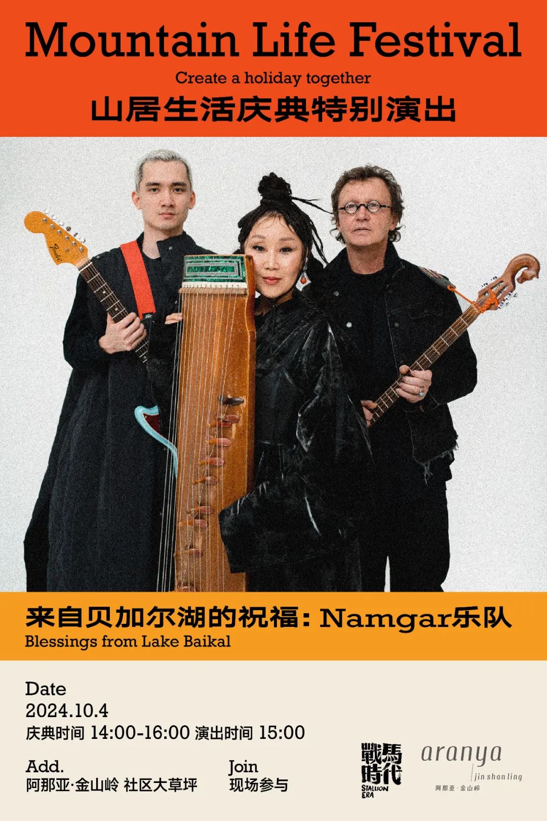 蒙古音乐大行其道的今天,有一支乐队的名字必须要提,就是Namgar——娜穆佳乐队。来自俄罗斯布里亚特共和国,贝加尔湖畔,娜穆佳乐队是当前世界最具影响力的布里亚特音乐组合。核心人物Namgar是布里亚特一代天后,成长于一个传统的布里亚特家庭,家族所属部落曾经是成吉思汗旗下的首领部落。Namgar的声线就像她的故乡西伯利亚,辽阔,无边无际,摇滚起范;在几秒之间可以从孩童的稚嫩直冲云端高处。Namgar承袭了强劲的马背精神,以流行音乐、爵士乐、民间音乐、氛围音景和艺术摇滚的元素融入传统民歌,还保有大量其他蒙古地区稀有的传统歌曲特色,同时展现出女性音乐家独特的生猛与多彩。山谷的秋,不止于松弛与悠然,还有“厚积薄发”的炽热与释放!花擂台、丰收跑、山谷骑行,阿那亚·金山岭将以它的方式重新诠释山居生活的畅快与活力!3.1