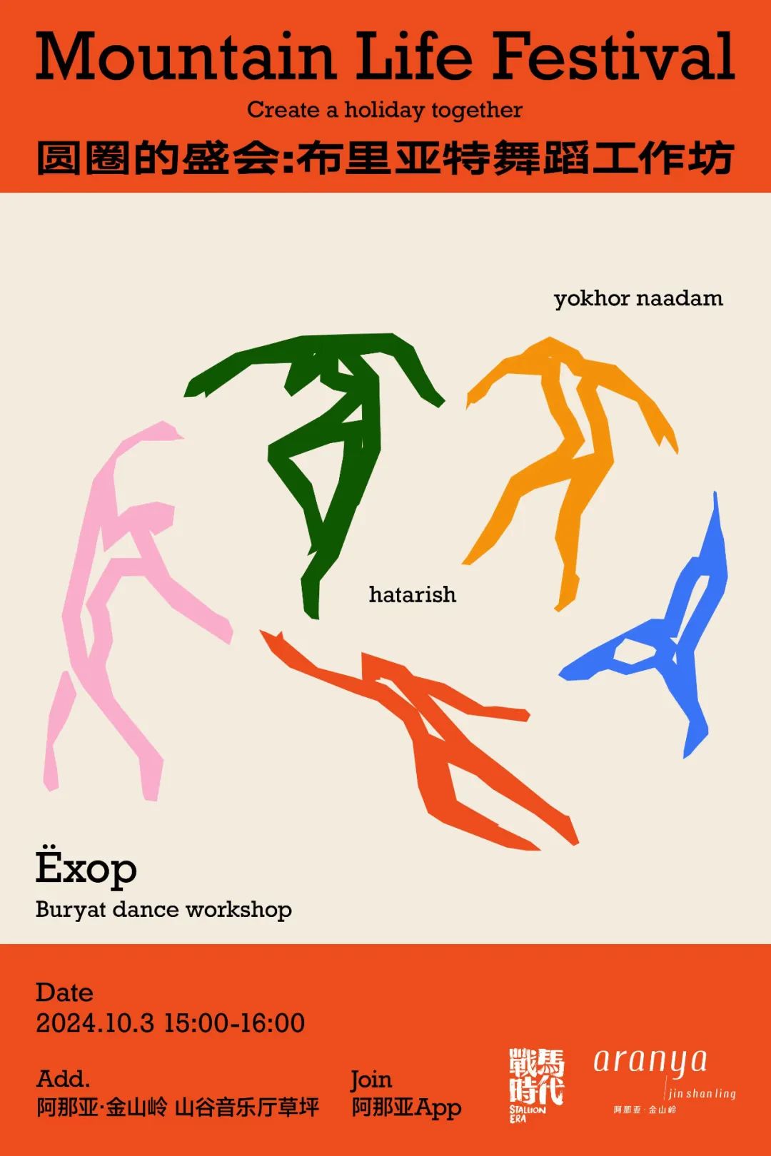 随着悠扬的蒙古器乐声响起,古老而神秘的吆呼尔(Yokhor)旋律将在草地上飘荡开来,它不仅仅是布里亚特蒙古人的传统歌舞,更是生命律动的赞歌。十指相扣,心手相连,围成一个又一个温暖的圆圈,在篝火的照耀下,让DNA中沉睡的游牧基因被瞬间唤醒,自由、奔放、无拘无束。这是一场游牧生活的起舞,更是一次对远方朋友炽诚的欢迎。活动时间:10月3日 15:00-16:00