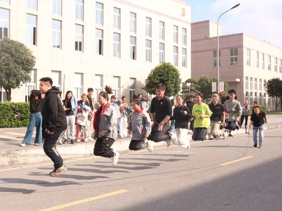 秋日的阳光洒落在公司的主干道上,随着长绳的舞动,每一次的跳跃都凝聚着团队的精神和力量。参赛队伍齐心协力紧密配合,共同跳过长绳,在一分钟内完成尽可能多的跳跃。在比赛中,各队伍展现出极高的默契与协作能力,场面十分热烈。经过激烈角逐,最终特康电子队凭借65次/分钟的出色表现获得了冠军,绳舞飞扬队(品质中心)50次/分钟获得亚军,起航队(一车间)47次/分钟获得季军。