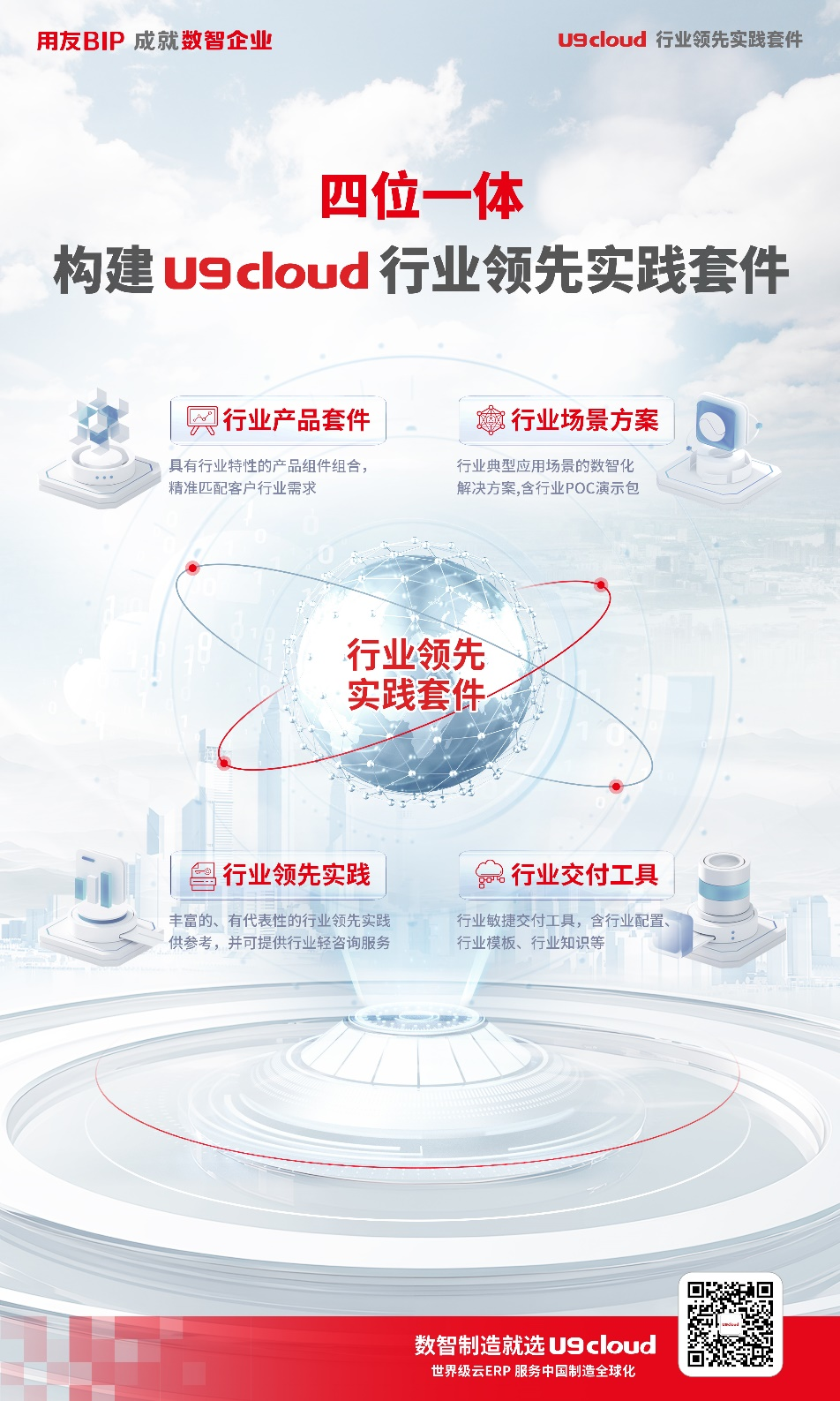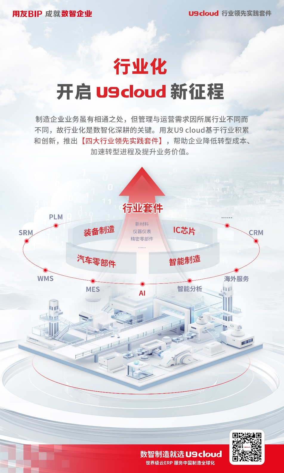 如今,通过推出四大行业领先实践套件,用友U9 cloud将进一步深化对制造企业行业化需求的理解与把握,提供更加精准可靠的数智化转型方案。同时,还将借助全球化能力和本地化服务优势,助力中国制造企业拓展海外市场、提升国际竞争力。