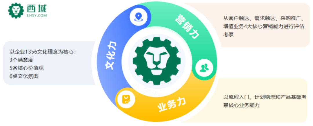 星狮培养项目立足于西域的战略与业务发展需求,同时也考虑到新生代员工的特点。西域人力资源部领导及营销需求部门管理层展开关键访谈,明晰西域人才发展战略,并进行标杆研究和素质解码,打造西域星狮素质能力模型。 该模型将文化力、业务力、营销力三个核心能力作为西域“新狮”需具备的核心能力素质。素质能力模型的搭建能够在培养期内做到识别选拔有标准,找到符合企业标准的管培人才;考核评价有尺度,对“新狮”的评估评价有清晰的能力要素行为标尺;培养发展有目标,让“新狮”清晰认知个人与组织目标要求差距,明确发展方向。