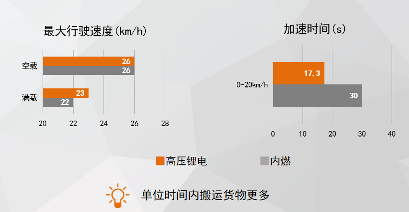 采用大扭矩永磁同步电机,液冷系统,节能高效,行驶速度、起升速度、爬坡度媲美内燃叉车,加速时间和耳边噪音优于内燃叉车。