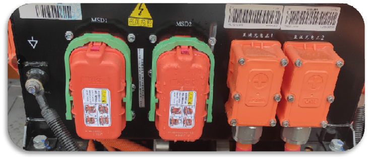 电气系统配备高压互锁、绝缘监测、电位均衡等功能,电池、接线盒及配电箱均有MSD维修开关一键断电,提供汽车级安全保障。