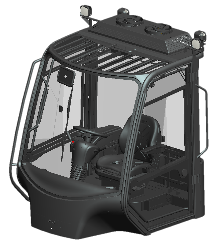 全景全浮驾驶室,视野好、操作空间大、驾驶室与车架柔性连接,有效隔绝振动传递。