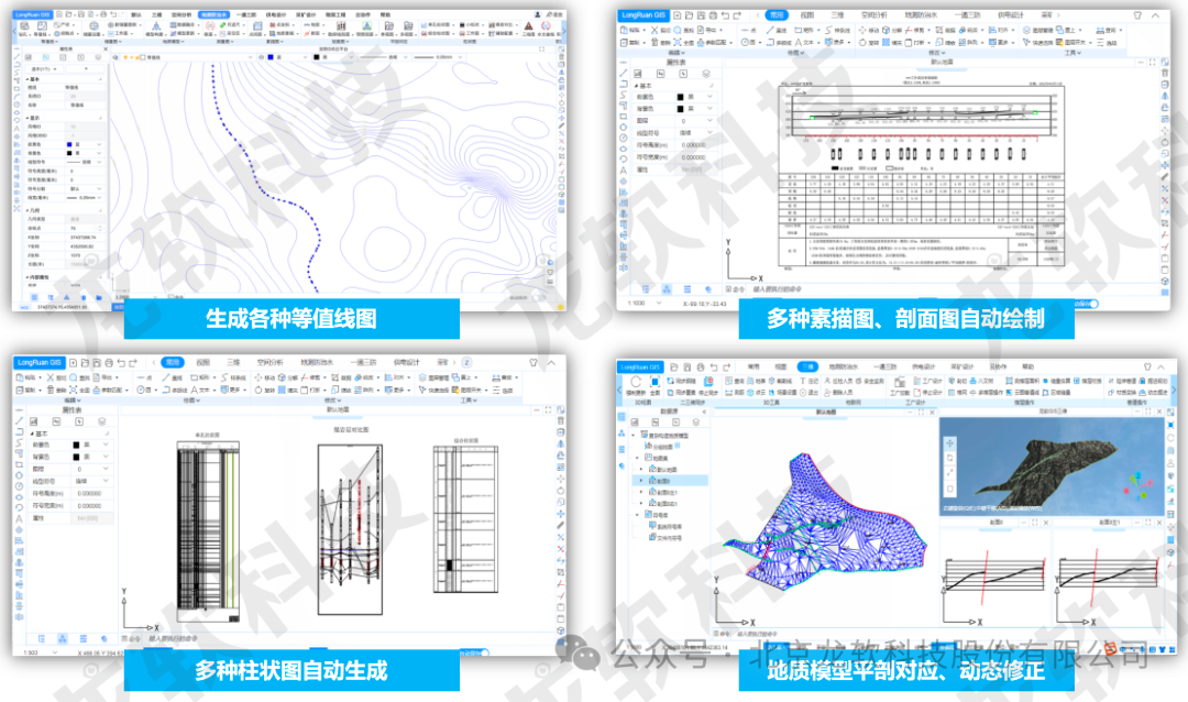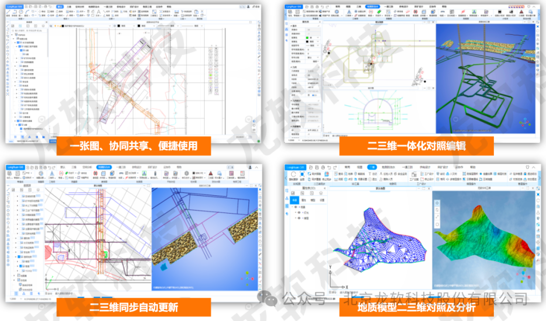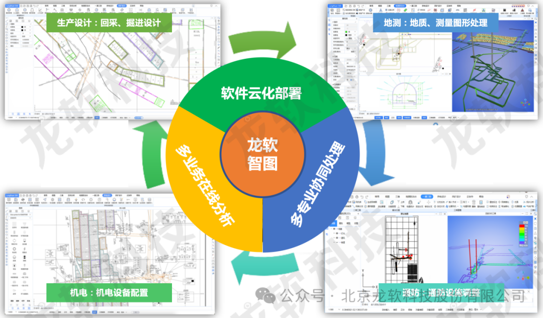 北京龙软科技股份有限公司(简称“公司”或“龙软科技”)成立于2002年2月,作为智能矿山工业软件的领航者,公司秉持“自主平台、原创开发”的信念,利用工业物联网、大数据、云计算、数字孪生和时空智能等高新技术,专注于矿山的信息化、智能化建设。公司于2019年12月30日成功登陆上交所科创板(688078),成为科创板矿山工业软件第一股,开创了公司创新发展的新纪元。公司在册员工500多人,控股和参股公司以及北京大学毛善君教授实验室(简称“北大实验室”)150多人。公司已取得国内专利95项(其中发明专利64项,实用新型9项,外观设计22项),国际发明专利15项,软件著作权330多项。公司已获得国家级、省部级和行业协会科技奖30余项,其中国家科技进步二等奖1项、教育部一等奖1项,行业特等奖2项、一等奖12项。截止目前,国家能源局71个智能化煤矿建设示范矿,公司参与建设的诸如透明化地质保障系统、智能化管控平台、采掘工作面自适应截割、智能化洗选等系统的煤矿数量为46对,遥遥领先。“基于透明化地质保障系统的煤矿智能管控平台研发与应用”被评为2023年度全国煤矿智能化重大进展,“矿山云GIS时空智能技术创新团队”被评为2023年度全国煤矿智能化卓越团队。除了专业机电设备和环境监测系统的生产外,龙软科技-北大团队已经成为国内外煤矿智能化建设自主产业链较为完整的团队之一,从采掘透明化探测、矿山“采、掘、机、运、通”和“水、火、瓦斯、顶板”多维专题图形的处理、透明化地测保障系统、基于透明化地测的管控平台,到智能化综掘、智能化综采、智能化通风、智能化洗选,都有专门的研发和实施团队,而且成果众多。智能化矿山建设产业链的重要基础是透明化地测保障系统,而透明化地测保障系统的基础就是能够处理各类专题图形的GIS软件系统。龙软GIS系列产品作为国内知名的矿山地理信息系统软件平台,经过 20余年的研发积累,经历了v1.0、v2.0、v3.0、v3.2、v3.5 等版本迭代升级,始终坚持自主研发、技术领先的宗旨,为透明地质保障系统提供了必需的数据处理平台,有效支撑透明地质保障系统的常态化、持久运行。目前全国煤矿装机已超过7万台套,累计使用单位超过1800多家,市场占有率大于85%,平均每月总交互操作超过2200万次。基于云服务架构的龙软云GIS(云地理信息系统,简称“龙软智图v1.0”)龙软科技从底层开发的、具有完全自主知识产权的新一代专业地理信息系统。该产品基于云服务、大数据、分布式协同、时空智能等技术,针对矿山地测防治水、透明化地测保障、一通三防、采矿设计和供电设计等多维专题图形处理实际需求,采用面向服务的架构体系开发,具有实用、易用、先进、可靠、可扩展等特点。为了快速推广在已有版本应用成果基础上研发的龙软智图,让更多的矿山应用到服务于智能化建设的时空数据处理系统,龙软科技现面向全国范围征集龙软智图产品代理商。我们诚挚邀请有志于矿山智能化事业发展的您加入我们,共同为矿山行业的安全、高效、智能化发展贡献力量!一、产品功能