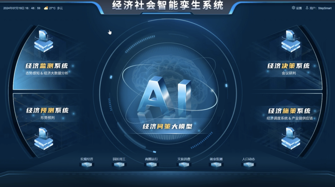一是服务经济治理效能提升,连接民生愿景与幸福实景。在智能孪生系统中,打造“五策五势”能力,即对经济社会进行监测分析、预测预警、决策支持、施策服务和问策于智,实现从态势感知、形势预判、趋势调度到监管与惠企服务的“观、防、管、服”的协同治理。目前,已落地服务30多个国家部委,100多个省市,实现了对国民经济指标、2000多个工业园区、4000多个商圈和文旅集聚区、全国人口规模、结构、流动以及3亿多外出农村劳动力、2亿多灵活就业群体的高频数据监测,从而研判工业经济、服务业经济、社会运行的发展态势。
