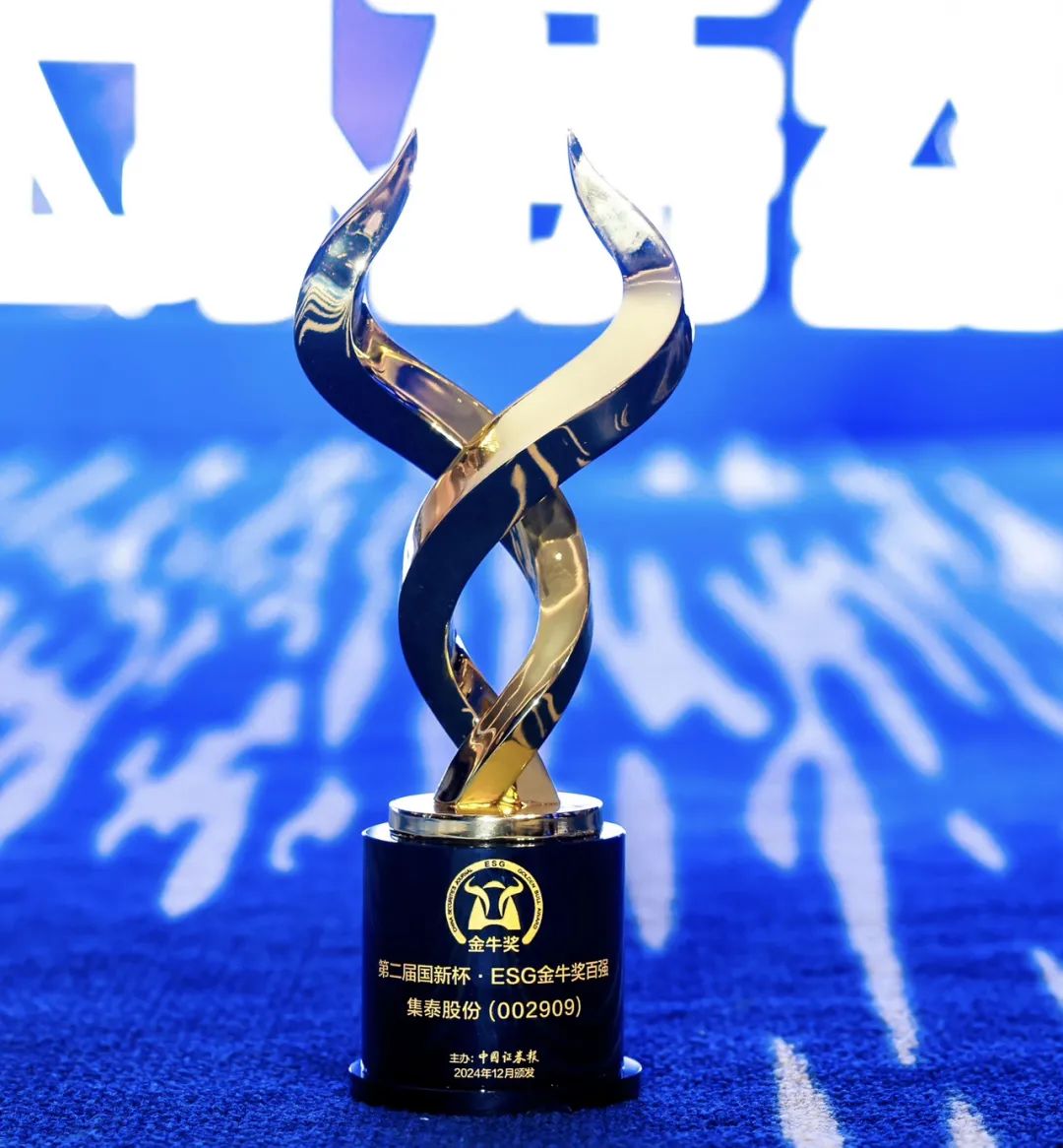 “第二届国新杯·ESG金牛奖”评选对象为中国内地上市公司。以截至2023年12月31日,去除违规及ST公司之外的A股上市公司作为样本,评选出综合榜单150家,分项榜单100家,共计250家公司获奖。集泰股份能够在众多上市公司中脱颖而出,凭借的是对 ESG 理念的长期坚守与不懈追求。自2020年起,公司每年均在官网发布ESG报告;2022年,开始在深交所正式披露ESG报告,全方位展示公司在企业管理、技术创新、市场服务、环境保护、员工关爱等方面的措施和成果,获得了众多机构的肯定。从“上市公司ESG典范企业奖”“ 大湾区上市公司绿色治理TOP20”到此次的“国新杯·ESG 金牛奖百强”,公司在践行之路上不断“突围”,打通了绿色生产与高效运营的关键脉络。
