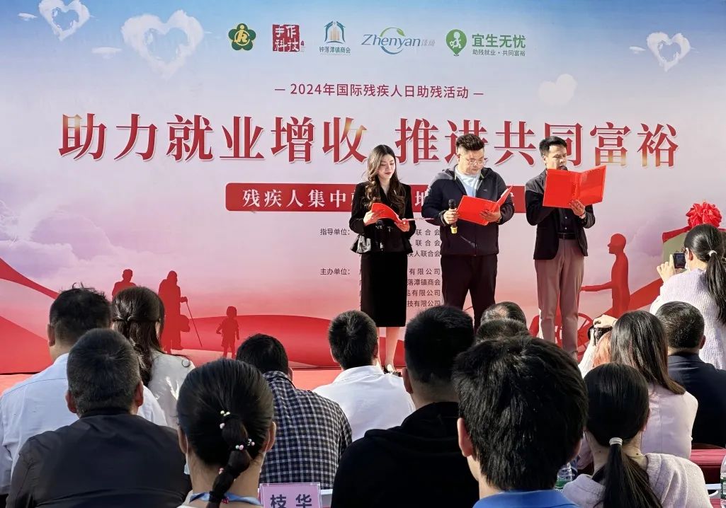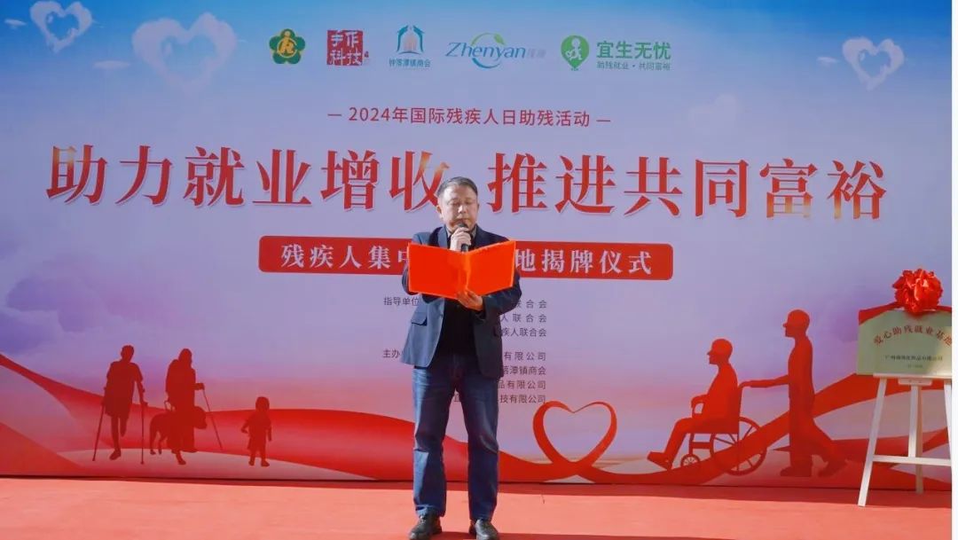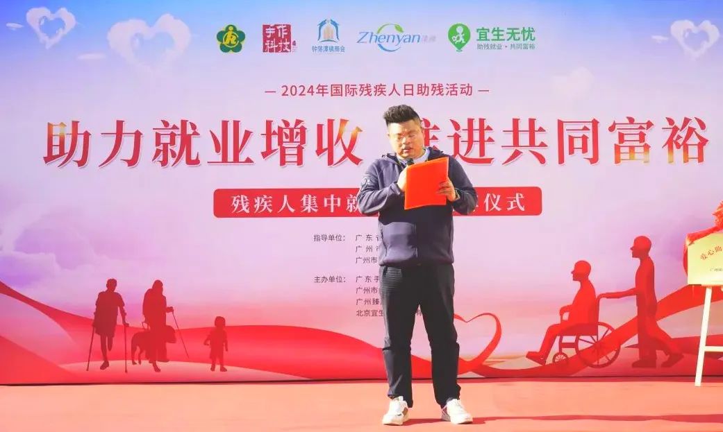 2024年11月29日,在广东省残联、广州市残联的指导下,宜生无忧联合广州臻颜共同举办了以“助力就业增收·推进共同富裕”为主题的2024年国际残疾人日助残活动暨残疾人集中就业基地揭牌仪式。广东省残疾人就业服务中心副主任王陈、广东省残联教就部干部谢杰、广州市残疾人就业培训服务中心副主任肖新生等领导出席了本次活动。