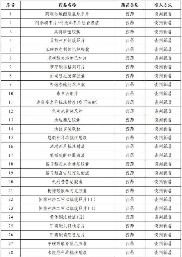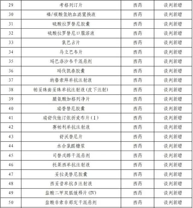 新版国家医保药品目录
