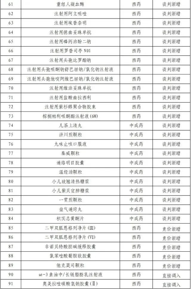 本次调整共新增91种药品