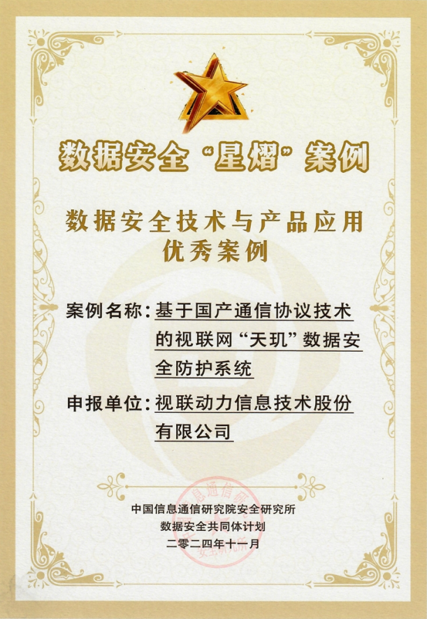 这一荣誉的获得,不仅是对视联动力在数据安全领域技术创新与实践应用的认可,更是对公司积极响应国家数据安全战略,持续推动数据安全产业发展的肯定。