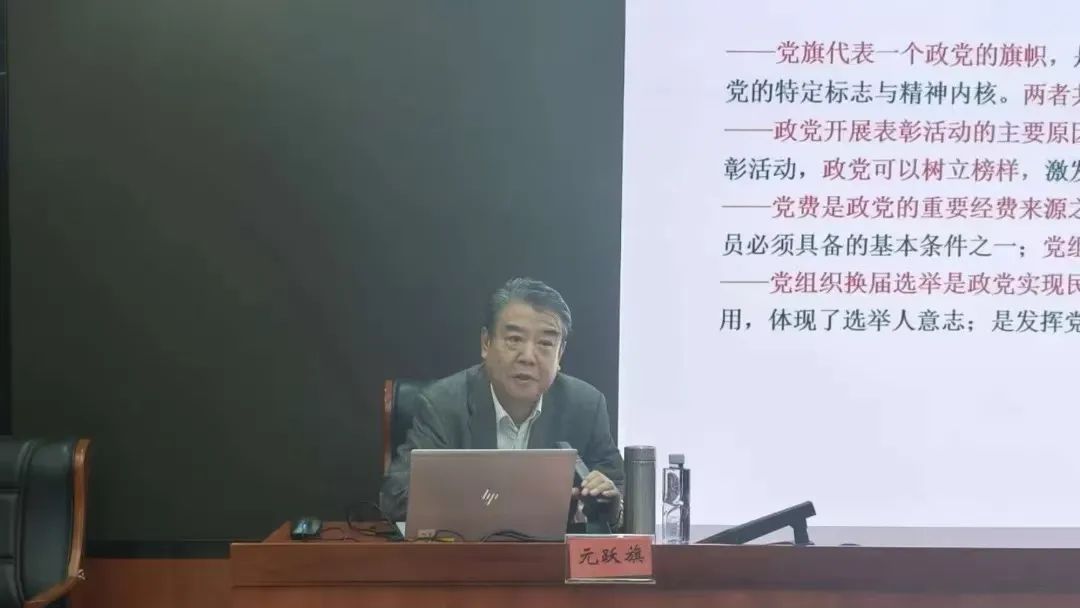北京市委党校党史党建教研部元跃旗教授围绕党内表彰、党徽党旗规范使用、党组织换届选举、党费收缴使用管理等基础知识开展专题辅导。元跃旗教授详细讲解了相关党内政策规定,结合巡视中发现的问题实例及平时工作中的实操问题进行分析,进一步规范党务工作流程。