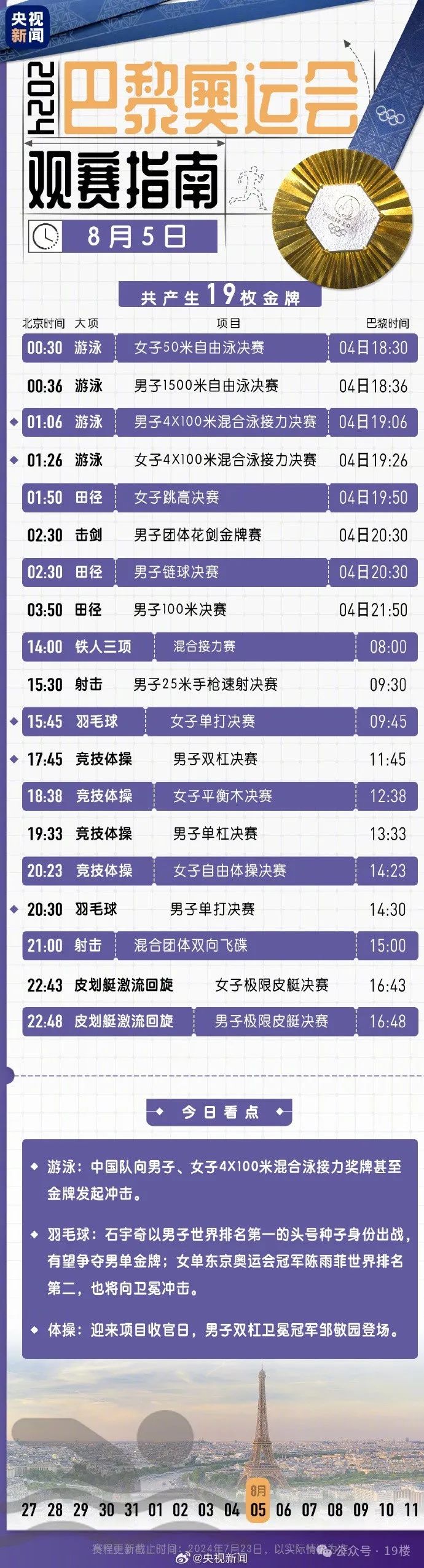 今日奥运夺金看点