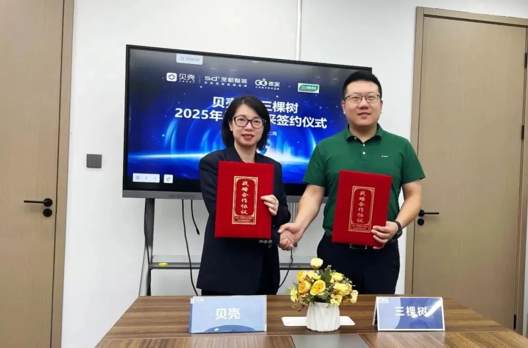 近日,三棵树与贝壳集团正式签署2025年战略合作协议,标志着双方将进一步巩固并深化长期战略合作伙伴关系,共同推动中国家装行业健康发展,为消费者打造更加舒适、环保、高品质的家居空间,以满足消费者对美好生活的向往和追求。