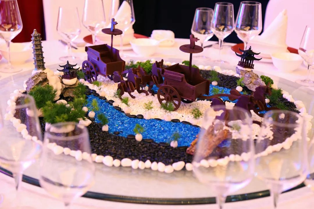要说最具观赏性的项目,万达君觉得要数中餐餐中装饰赛场,大厨们以桌为画布,构建出一个个富有意境的人文景观,打造“盘中诗画”!