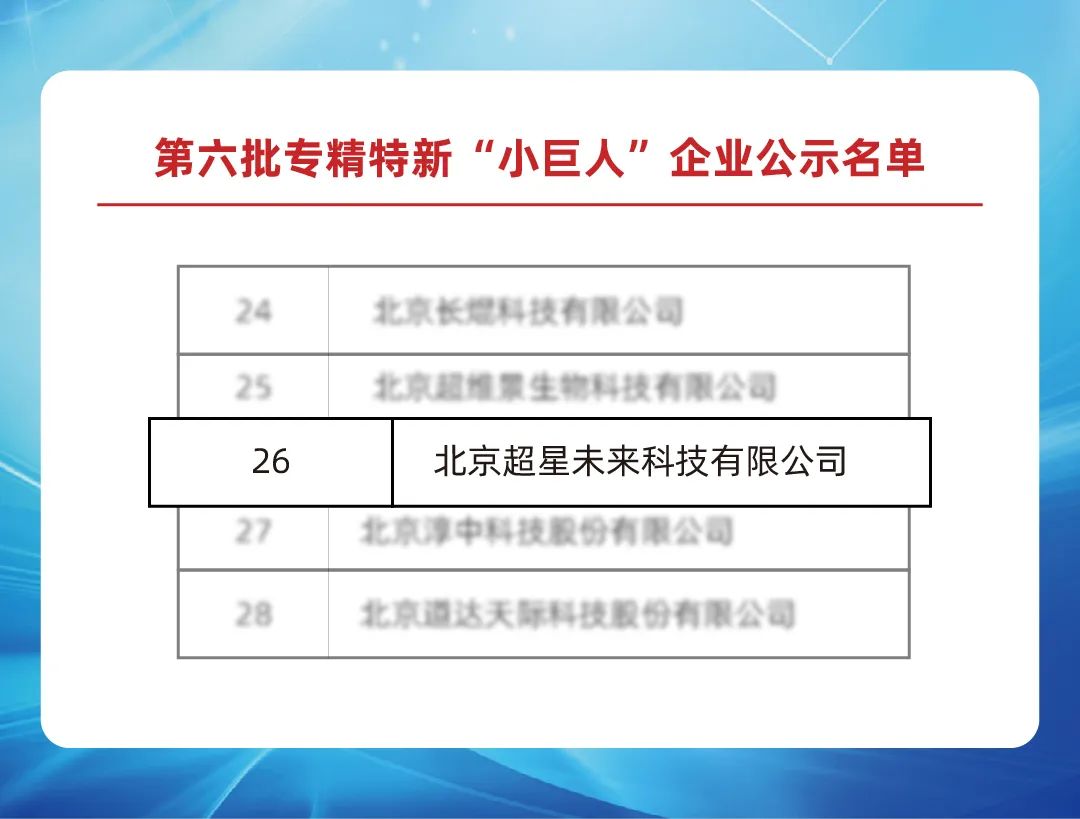 近日,北京市经济和信息化局公示了第六批专精特新“小巨人”企业名单,超星未来成功入选。