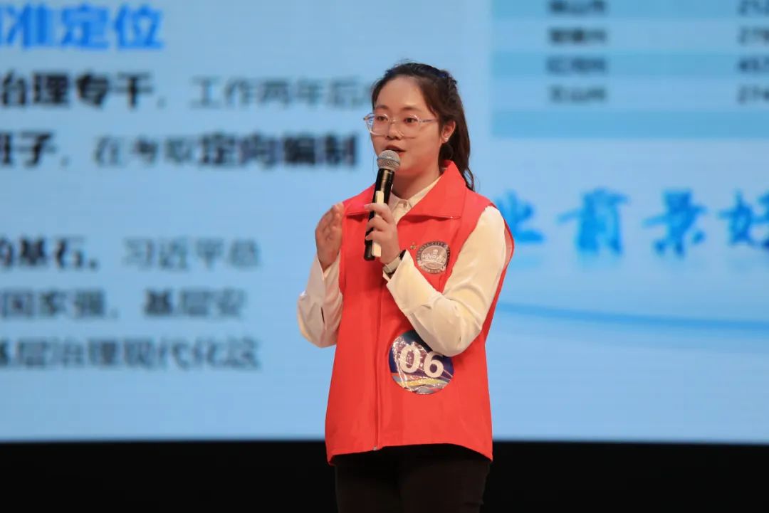 比赛分为主题陈述、评委提问两个部分,参赛过程中选手们对自己的人生规划进行思考,定准目标,进行陈述;评委们以职业目标、学习实践活动和动态调整作为评审标准,给每一位上台的选手提出职业发展建议,鼓励选手们跨越难关,为自己的未来书写更加华丽的篇章。