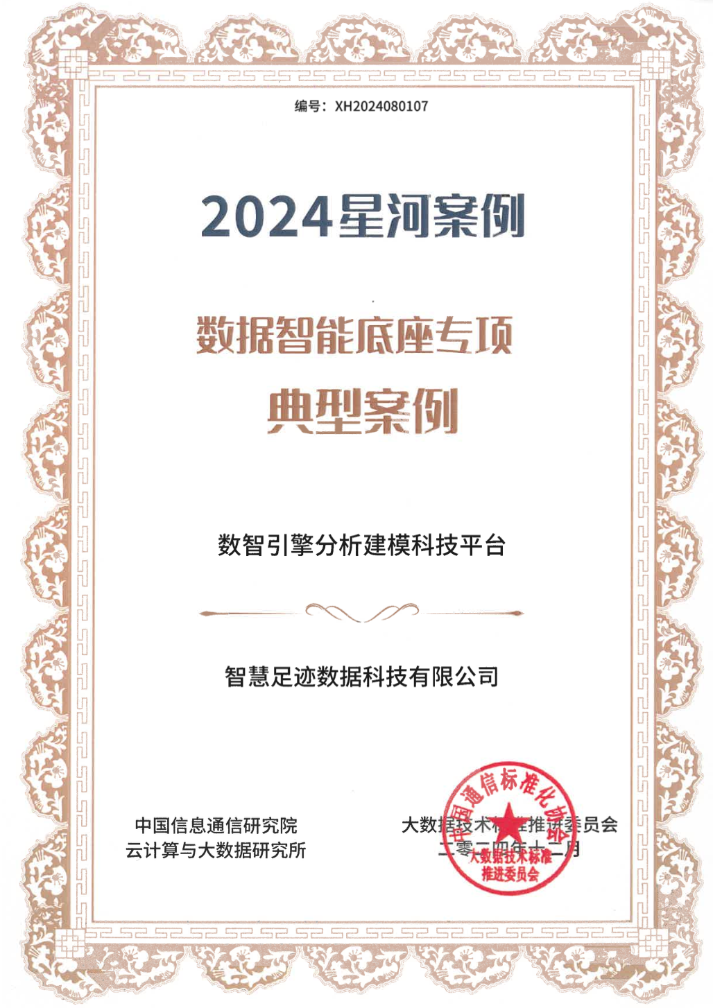 12月18日,由中国通信标准化协会主办的2024数据资产管理大会在北京召开。会上,举行了“星河”典型案例的证书颁发仪式,中国联通智慧足迹申报的数智引擎分析建模科技平台,从730余个案例中脱颖而出,入选数据智能底座专项典型案例。