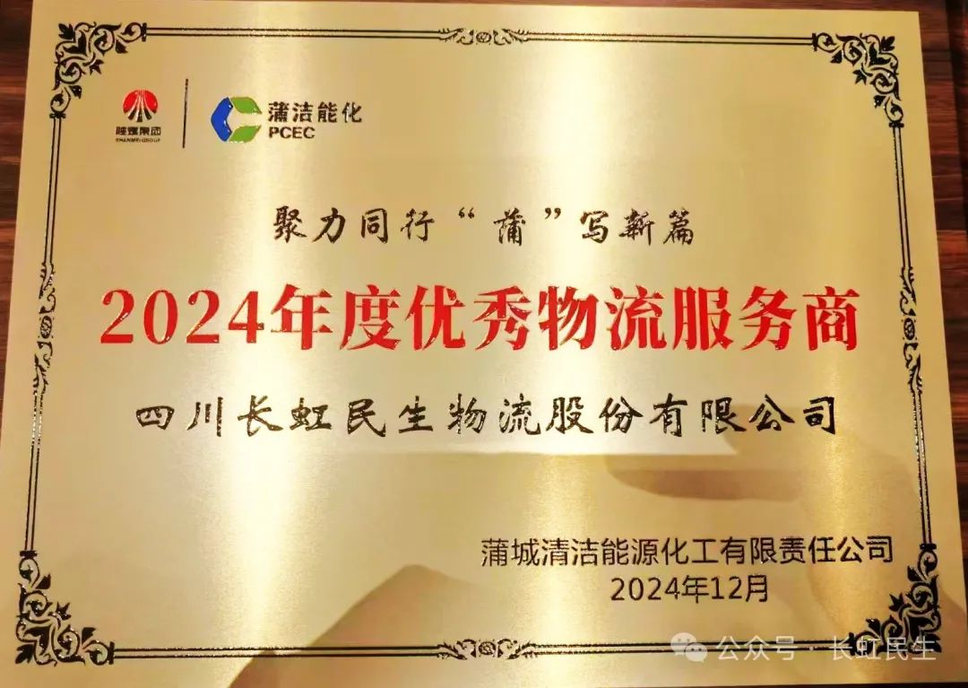 被客户蒲城清洁能源化工有限责任公司评为“2024年度优秀物流服务商”,这是客户对长虹民生高效、优质服务的肯定。