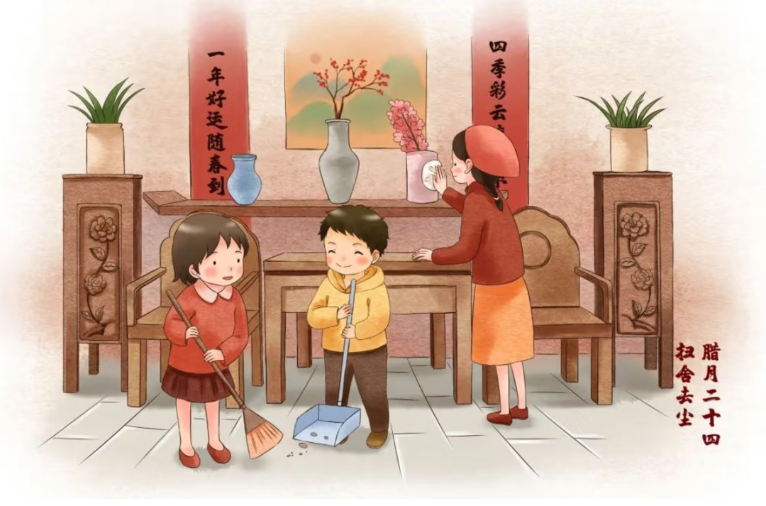 小年,民间掸尘的日子。这一天家家户户得起个大早扫房擦窗,洗衣清物,刷锅涮瓢,彻底清扫家庭,扫除一切尘土与晦气。这不仅仅是物理上的清洁,也是心理上的“清除”与“更新”,象征着告别过去一年的不顺与不幸迎接一个全新的开始。