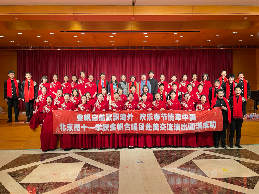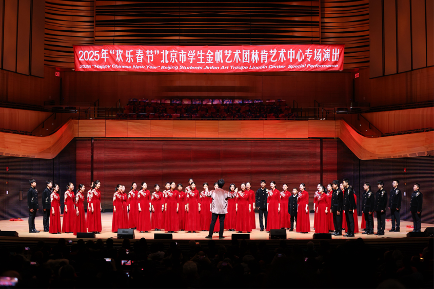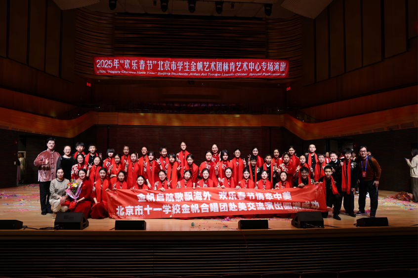 2025年1月20日,北京市十一学校金帆合唱团在美国纽约林肯艺术中心惊艳亮相,与中国北京市学生金帆艺术团、联合国国际学校管乐团的400名学生共同呈现了2025年“欢乐春节”专场演出。