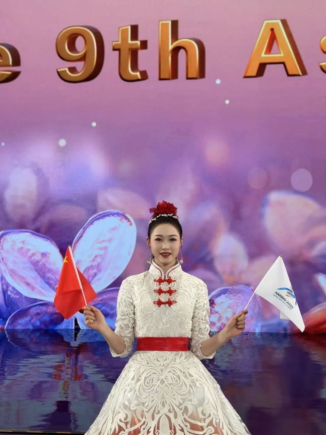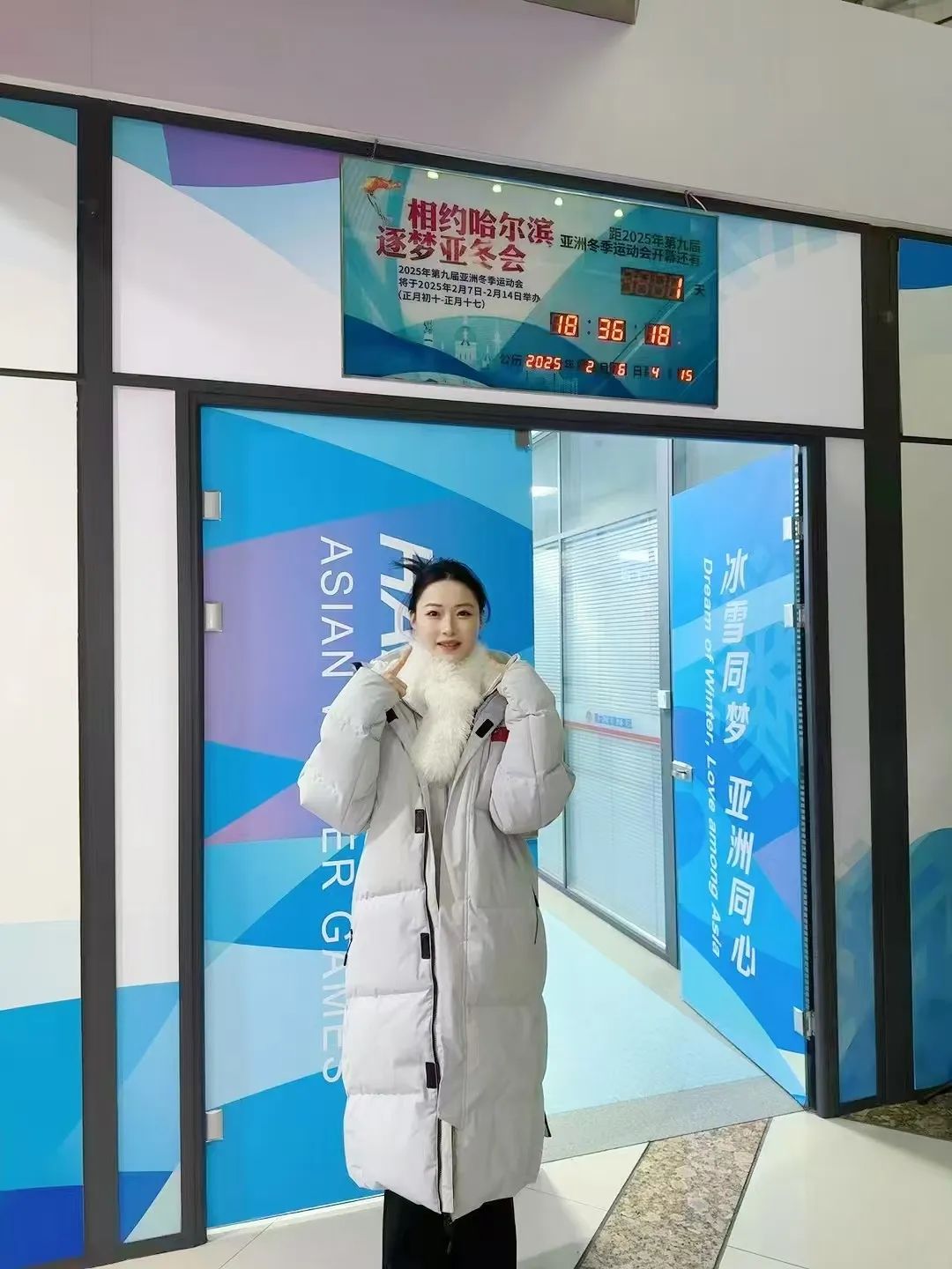 从亚冬会引导员选拔开始,到站在世界的舞台上亮相,前后共经历了4次面试,从学校海选到导演组初试,从组委会复试到省市领导终审,每一次面试,都要展现出最好的状态,从12月9日开始,经过两个月的封闭训练,从容地踩上高跟鞋、自信地举起水晶牌、昂首挺胸、惊才风逸地面带笑容体现出了这两个月刻苦训练的痕迹,正是这无数次的打磨,才让她在开幕式上绽放出如此夺目的光彩,成为亚冬会开幕式上一道亮丽且难忘的风景线 。作为亚冬会引导员,代表哈尔滨形象、中国形象参加此次亚洲冬季运动会,她感到无比骄傲与自豪,同时也成为了她人生中最宝贵的经历。选拔时的激烈竞争,让她深知这份荣誉的来之不易,在训练的日子里,每一次的人员调动都让她对这份使命有了更深的敬畏。