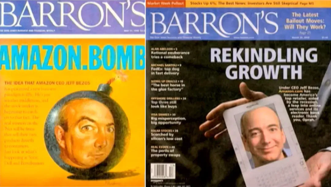某种程度上,他们是对的。在泡沫破灭时,亚马逊一度跌去了90%以上的市值。毕竟当时没有人能想到,亚马逊会发明电子阅读器 Kindle、推出Prime会员计划、开创云计算平台AWS、制作原创电视和电影节目……1999年的亚马逊,和2009年的亚马逊,可以说已经变成了截然不同的两个公司。