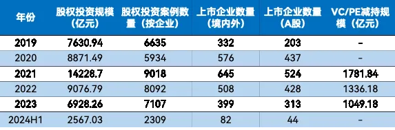 而从2019年至2023年这5年间,中国股权投资市场的年平均投资金额大概是9000多亿元,投资案例数量大概是7000多起。