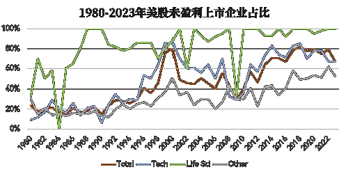 据美国佛罗里达大学Jay R. Ritter教授的数据,2001—2023年,68%的技术企业、96%的生命科学企业、80%的技术+生命科学企业IPO时未盈利。
