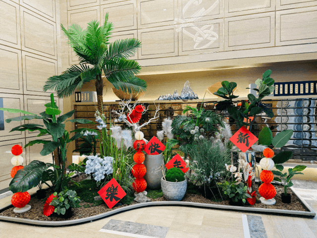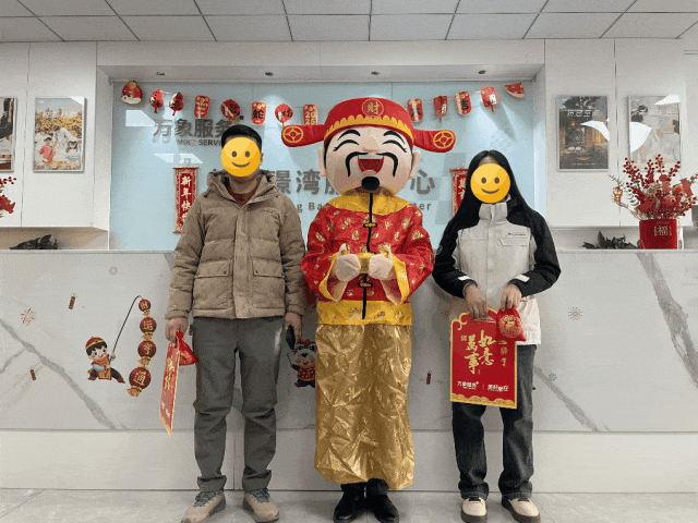 欣赏园区精心装扮的万家当红“新春福”