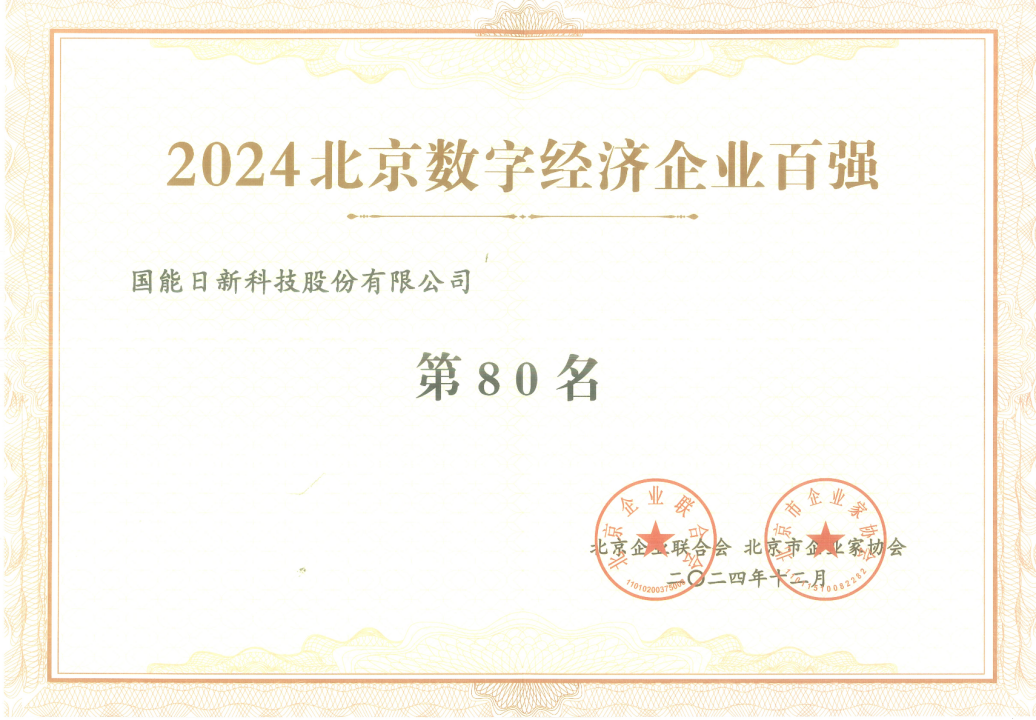 近日,国能日新凭借卓越数据技术实力与突出行业贡献,被北京企业联合会和北京企业家协会评选为“2024 北京数字经济企业百强第80名”。作为能源数据技术领航企业,国能日新专注于为新能源电力行业的高质量发展研发信息化、数智化整体解决方案,以能源精细化管理和高经济性运营推进“能源数字化“进程。