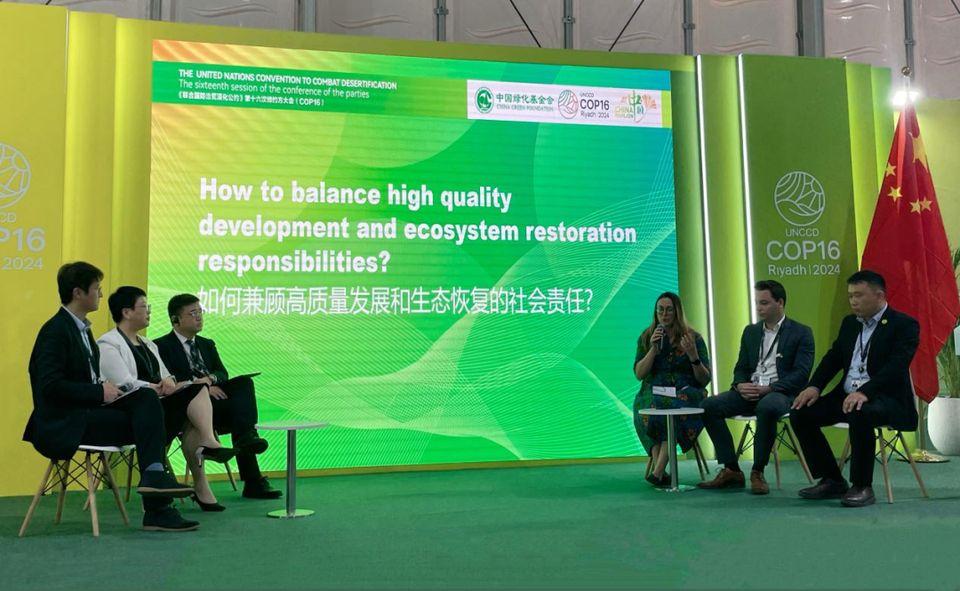 ▲第二届“一带一路”生态治理民间合作暨“万亿棵树”生态恢复创新治理国际论坛在UNCCD COP16“中国馆”举办