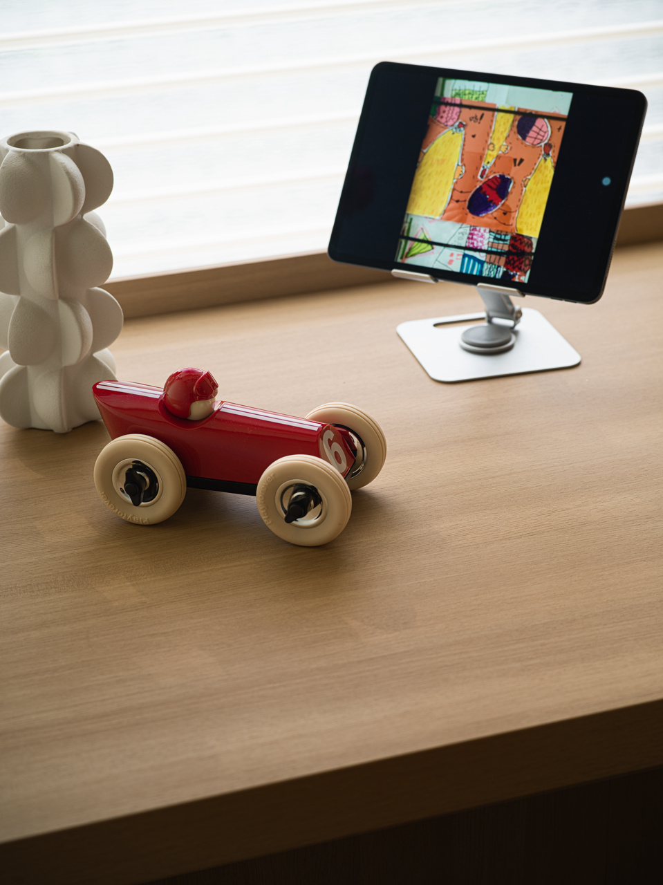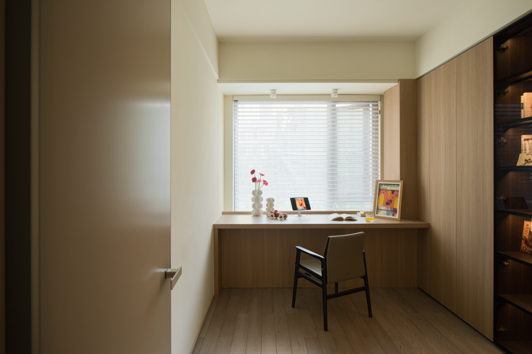 书桌既可以作为小石榴的手工创作平台,也可以摇身一变,成为一家人聊天喝茶或招待贵客的绝佳场所。