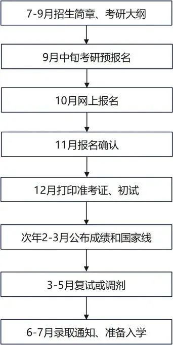 大致流程如下:25年9月中旬,进入预报名及正式报名阶段;12月参加考研初试考试;26年3-4月进行复试、调剂;26年5月考研招生结束。