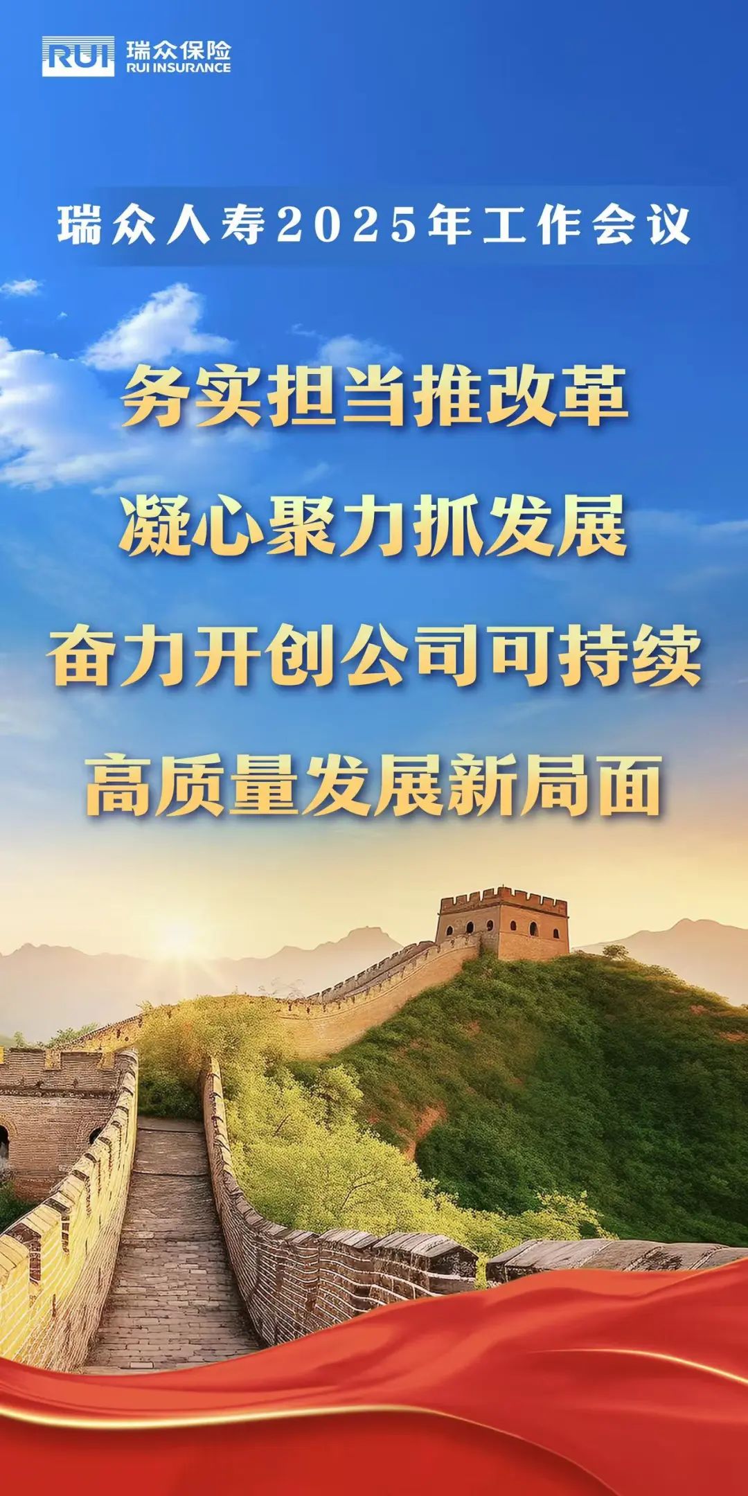 2025年1月21日,瑞众人寿在京召开2025年工作会议。会议以习近平新时代中国特色社会主义思想为指导,深入贯彻党的二十大和二十届二中、三中全会及中央经济工作会议精神,全面落实上级党委和股东单位要求,总结2024年工作,部署公司全面深化改革和2025年重点工作任务,努力推进公司可持续高质量发展。瑞众人寿党委书记、董事长(拟任)赵国栋出席会议并讲话。