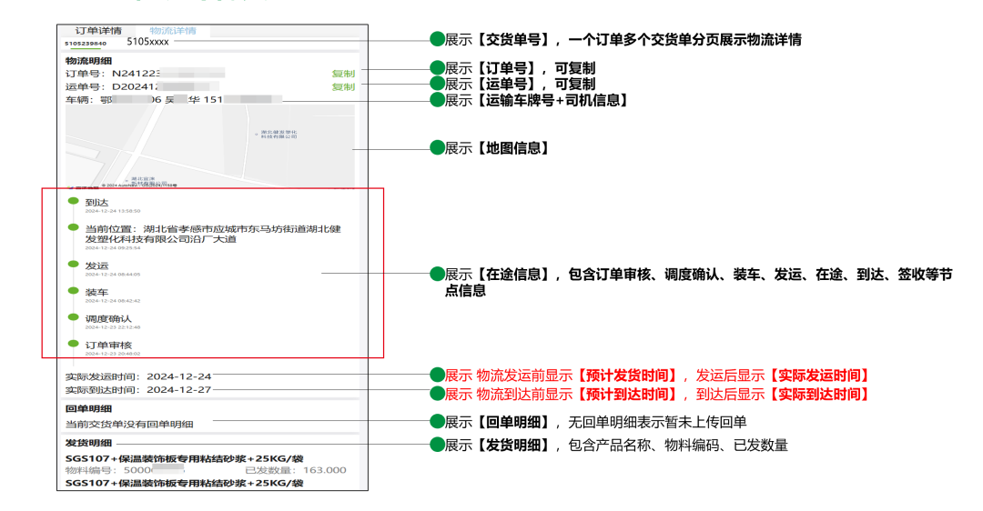 实时跟踪订单物流情况,了解货物发运时间和在途信息,还可以看到回单和运输路线等明细,直观掌握物流详情。