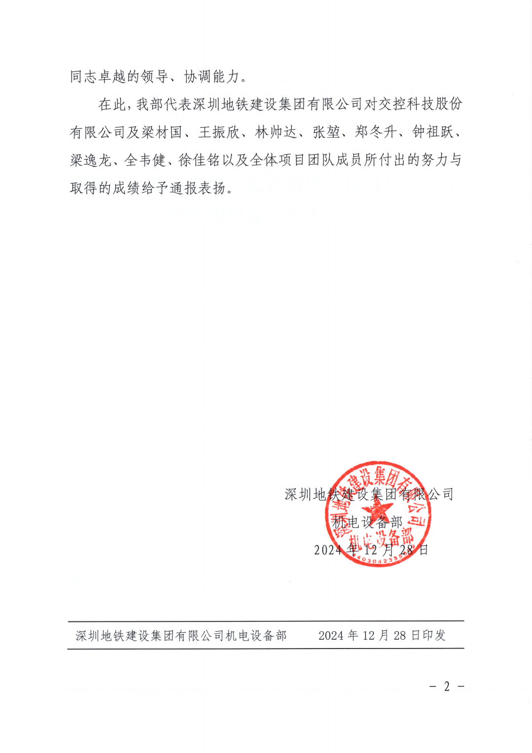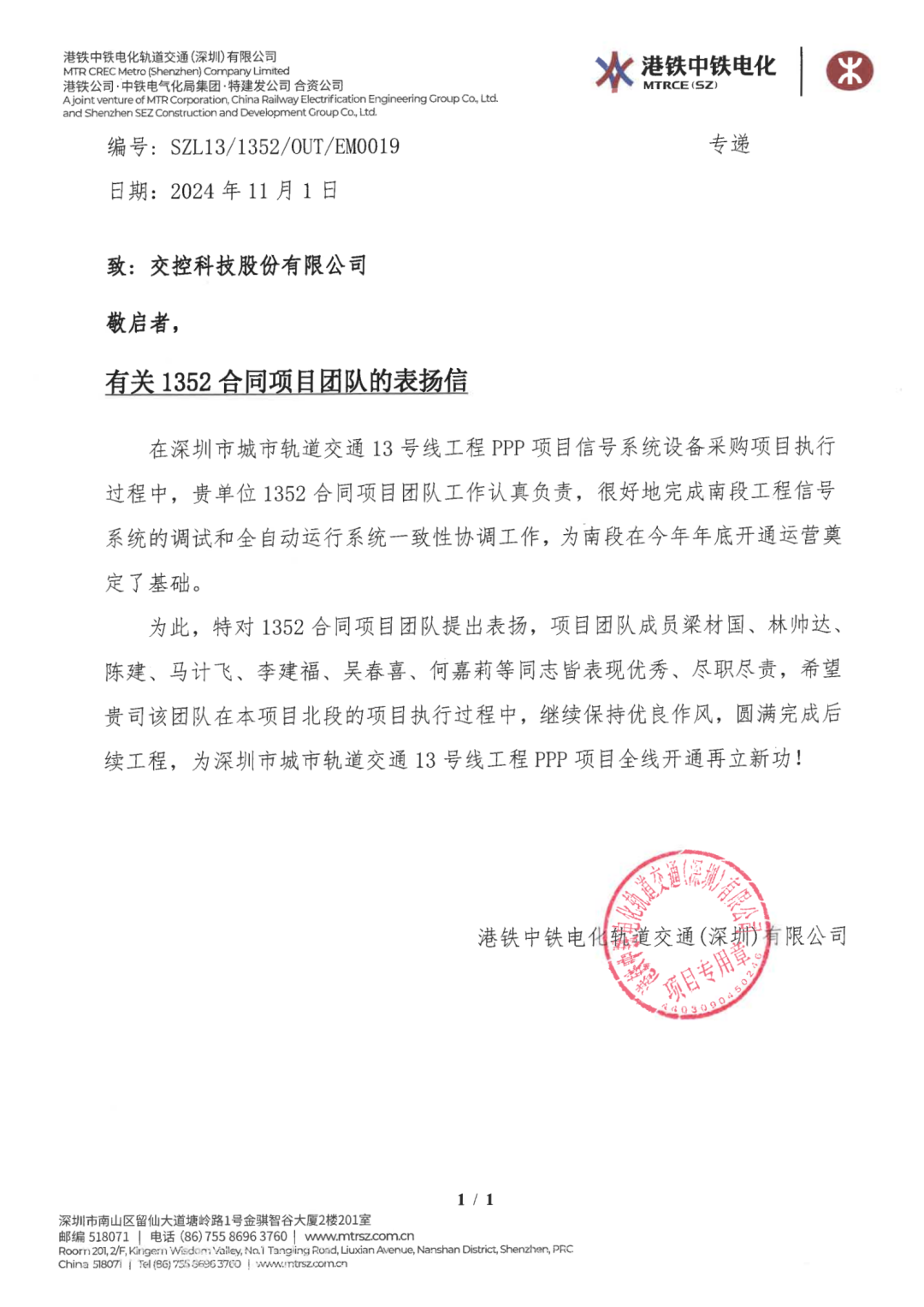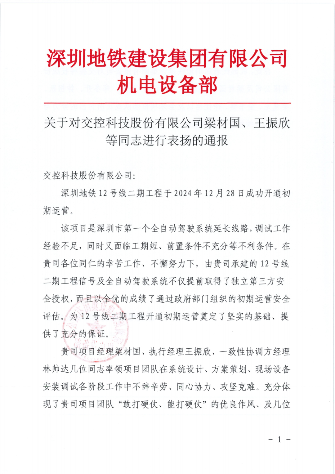 交控科技深圳项目团队,在业主单位及各合作伙伴的鼎力支持下,始终坚守团结协作、勇于开拓的创新精神,携手客户共同确保了项目的高质量顺利开通。团队所展现的卓越努力与取得的显著成就,赢得了业主方的高度赞誉。