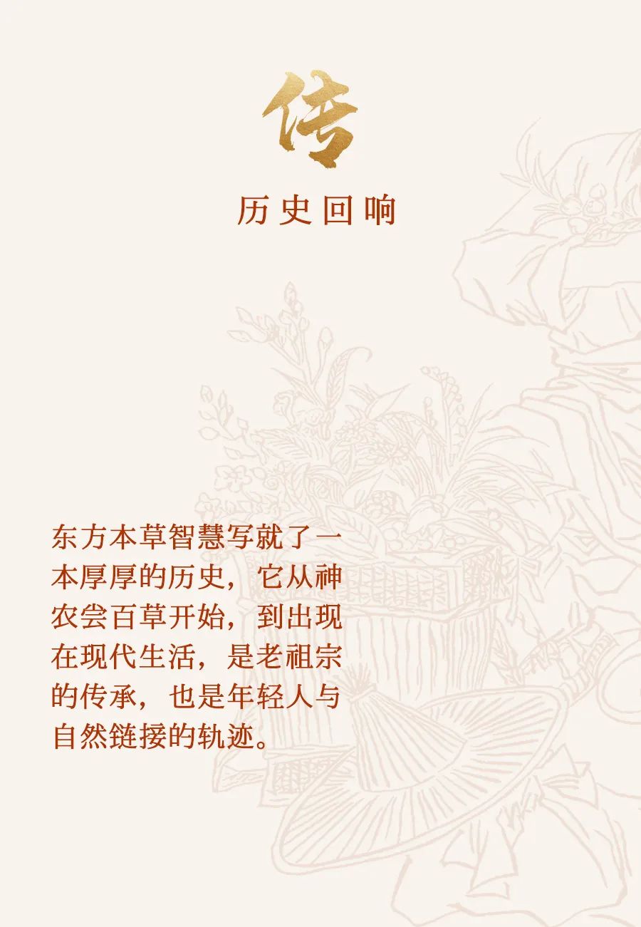 立足东方,传承千年的养生智慧,带来悠远又响亮的传承回响,我们从老字号学会的,是不急功近利,不盲目跟风,用自己的工艺和品质坚守着一代代人的初心与坚定。