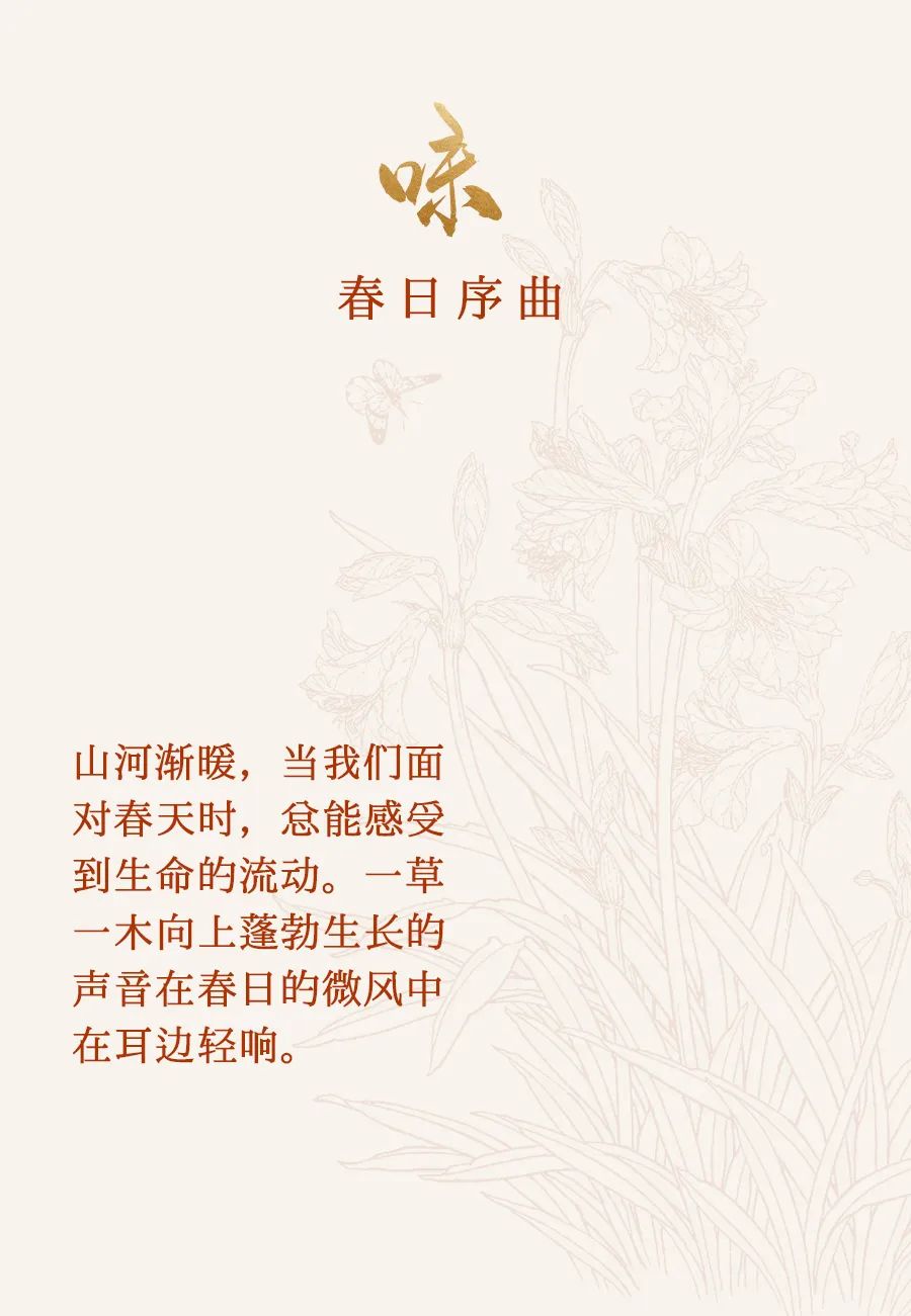今日立春,始于春日的风味,要有茉莉,有鲜茶,有香甜温暖的味和充满期待的蓄势待发。被困住的人,从这一天开始,也能嗅到阳光的气味。