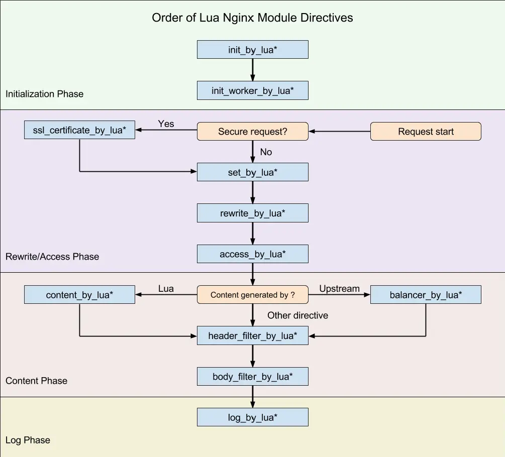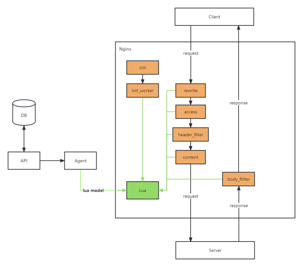 我们通过Lua脚本在Nginx处理请求的各种阶段,执行自定义的脚本,实现不同的功能。涵盖了nginx初始化、请求处理、请求转发、响应和日志等非常完整的请求和响应流程,并且在很多公司都有实际应用。