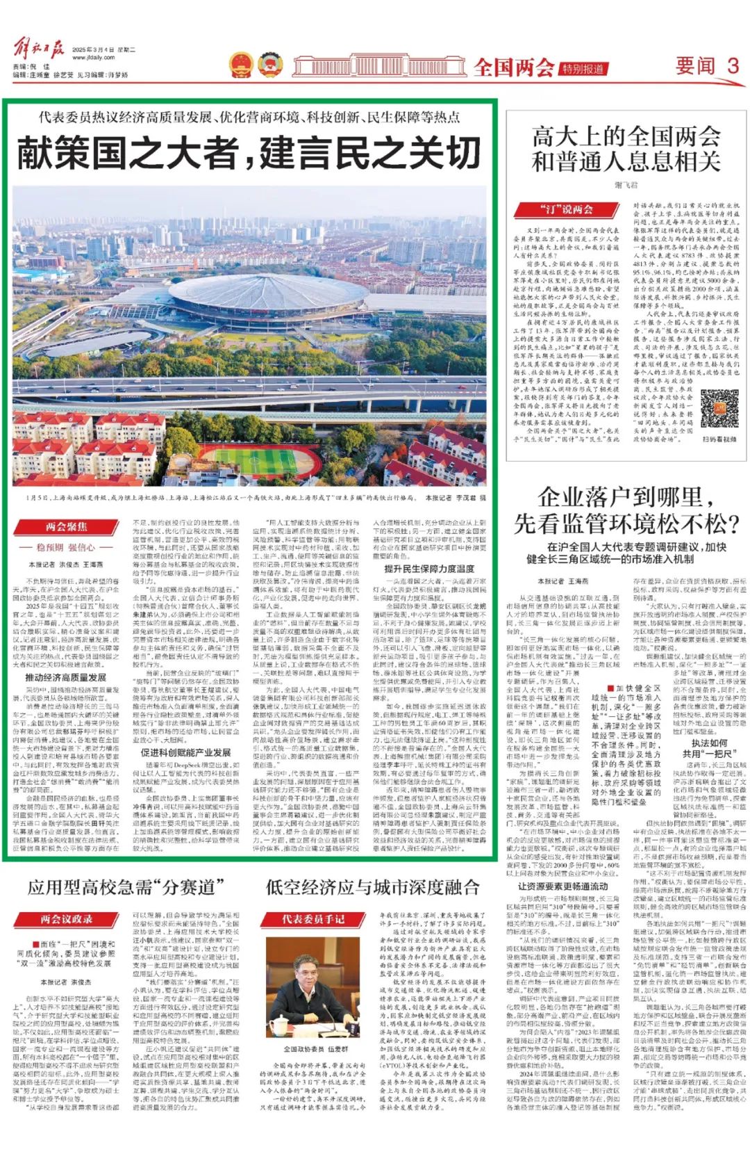 在现场聆听了今年的政府工作报告后,蒋颖委员对于报告提出以“服务的暖心增强企业的信心”印象深刻。国有企业在深化改革的同时要加快建立“国有企业履行战略使命评价制度”,进一步发挥国企在国家经济中的重要作用;“扎扎实实”落实促进民营经济发展的政策措施,“切实依法”保护民营企业合法权益;为激发各类经营主体活力,我们也要切实保障外资企业多方面的国民待遇,持续营造一流的营商环境,让外资企业更好地、更安心地在中国健康发展。今年的报告还强调了“深化政企常态化沟通交流,切实帮助企业解决实际困难和问题”,这个宣示体现了政府对企业获得感和安全感的关注,表明政府在认真践行“政府寓监管于服务之中”的为民理念。