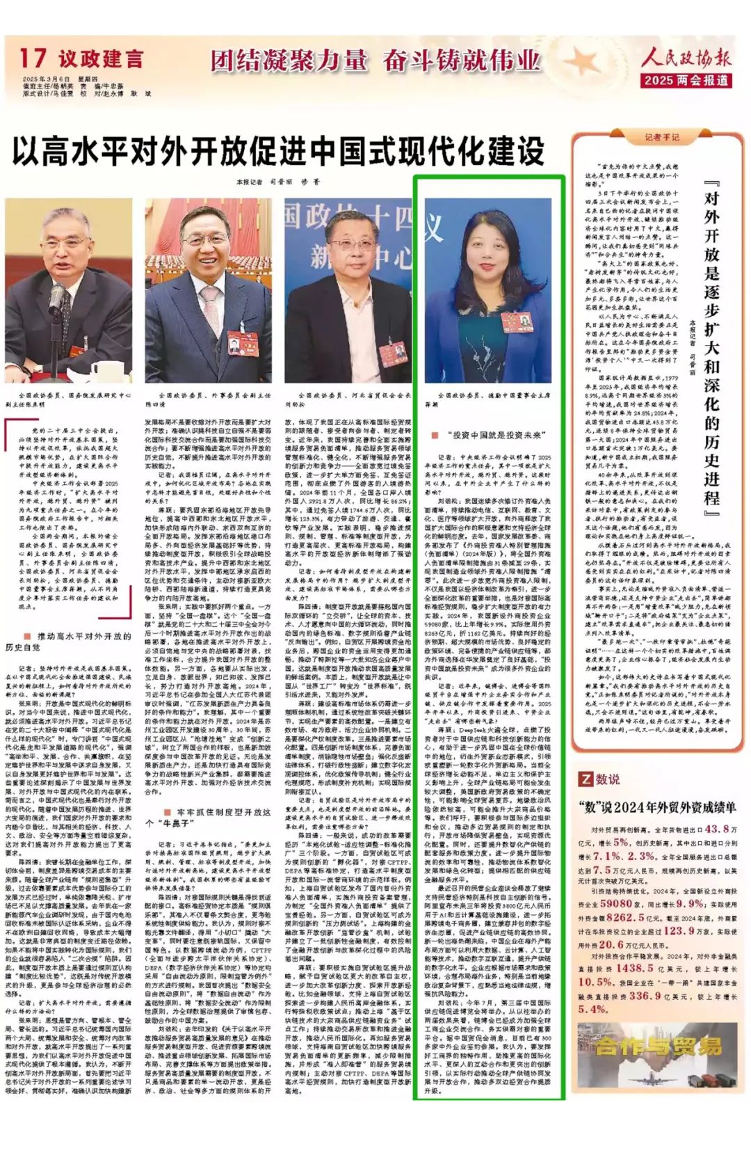 2025年3月,带着连续十四年关注优化营商环境的建议,蒋颖委员再次步入北京人民大会堂,作为来自专业领域的无党派界别的新阶层的全国政协委员,为经济高质量发展专业建言、务实献策。
