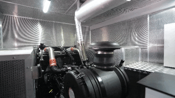 发电机舱一体式全封闭设计,上排气+消音设计,内壁全蜂窝隔音材质覆盖。
