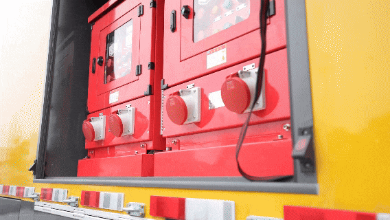 铝合金液压尾板, 可承载1.5T,大容量尾部存储舱,可放置水带、浮圈等配件。
