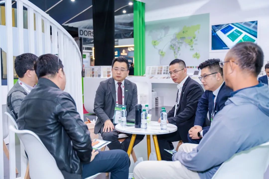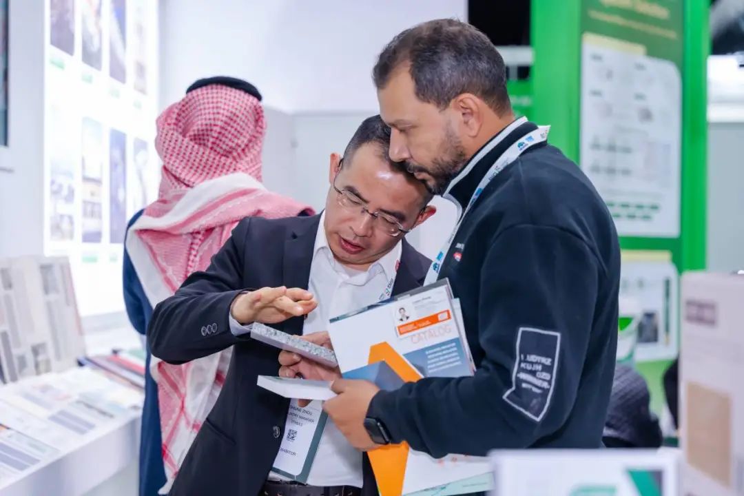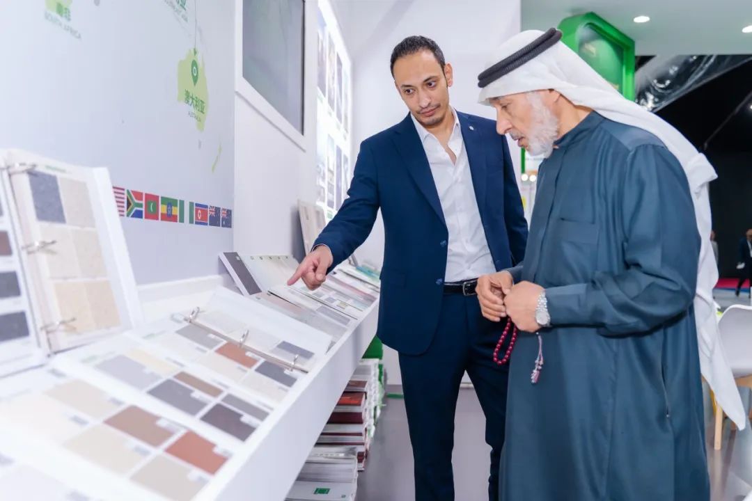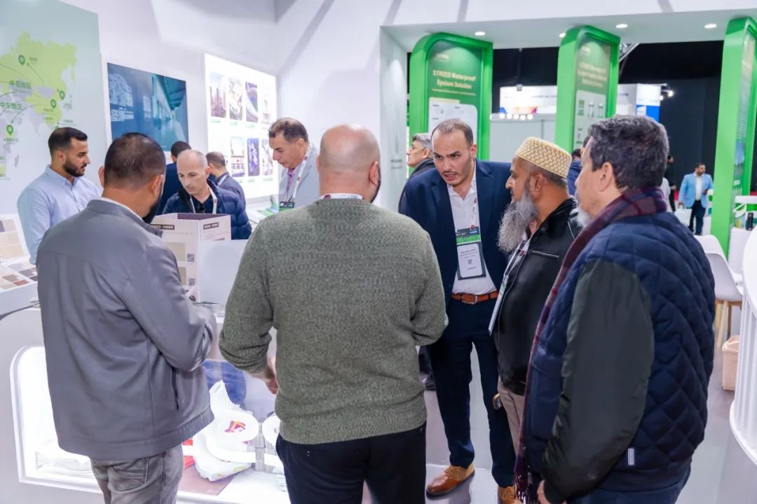其中,外墙产品凭借卓越的耐候性与适应中东高温干旱环境的特点,赢得了众多客户的关注与认可。真石漆系列产品在节能降耗和施工便捷性方面表现突出,成为展会上的一大亮点。