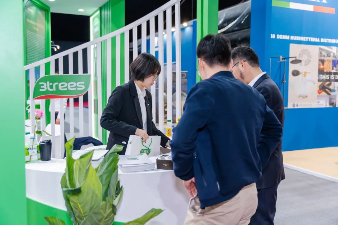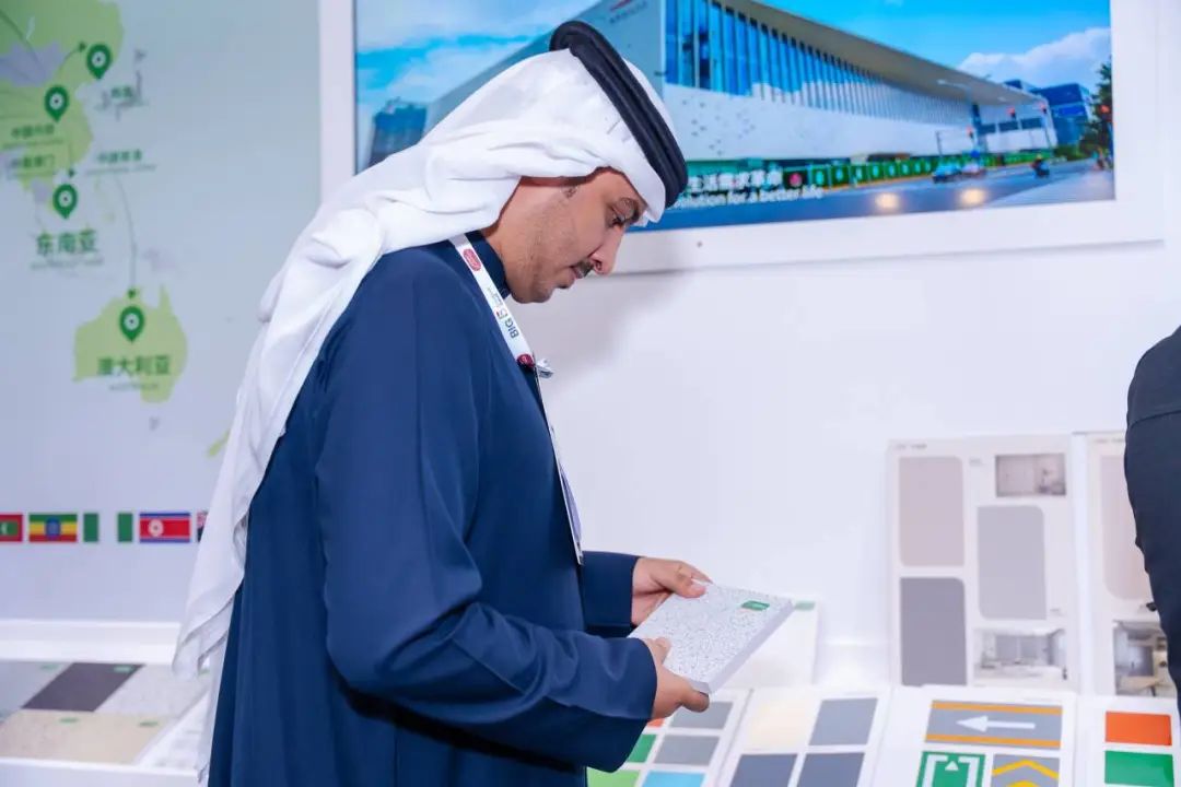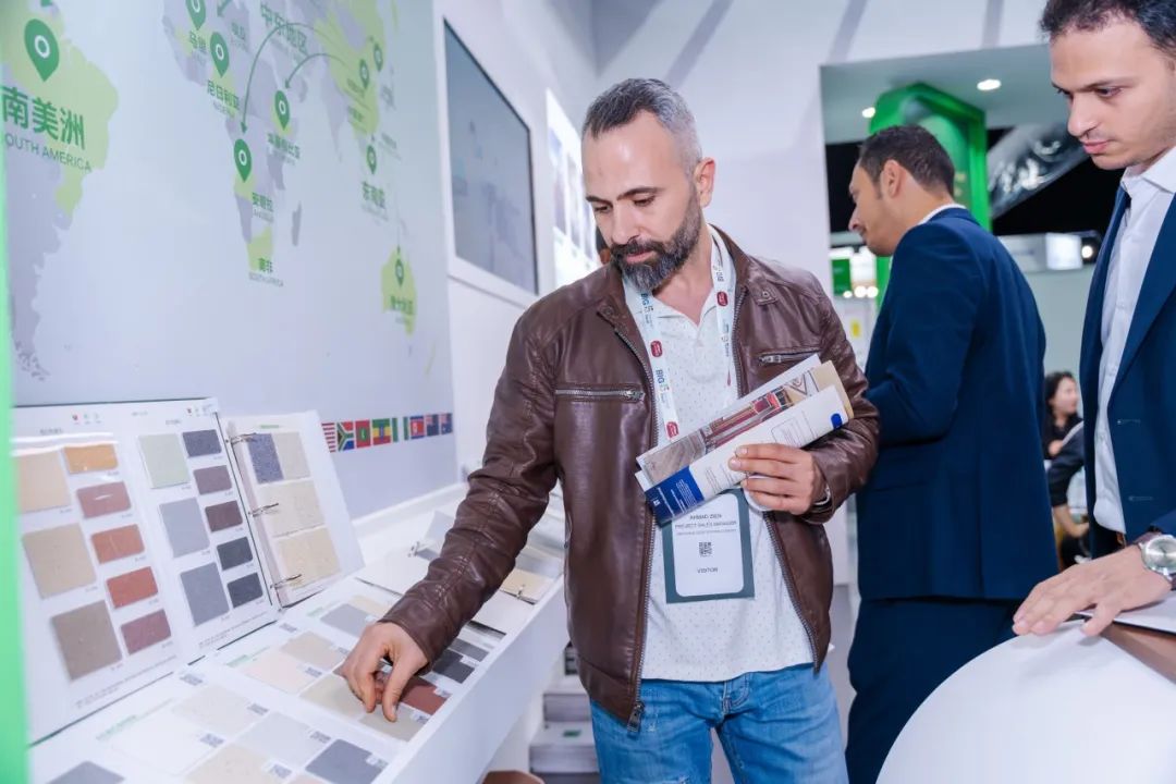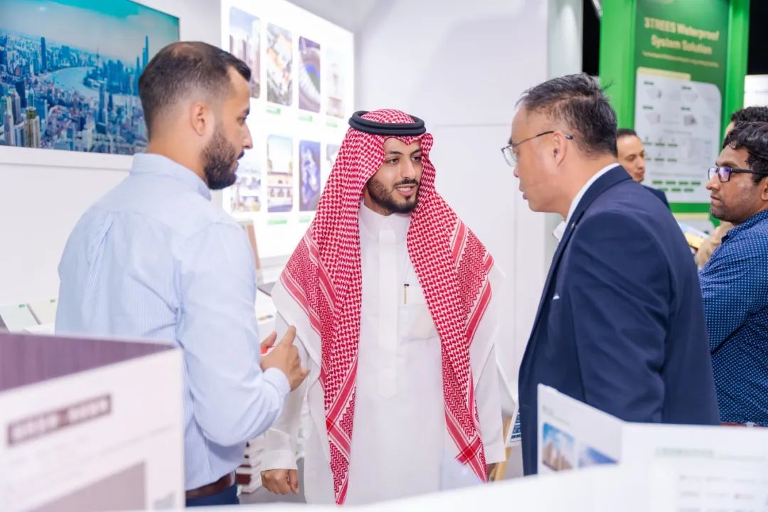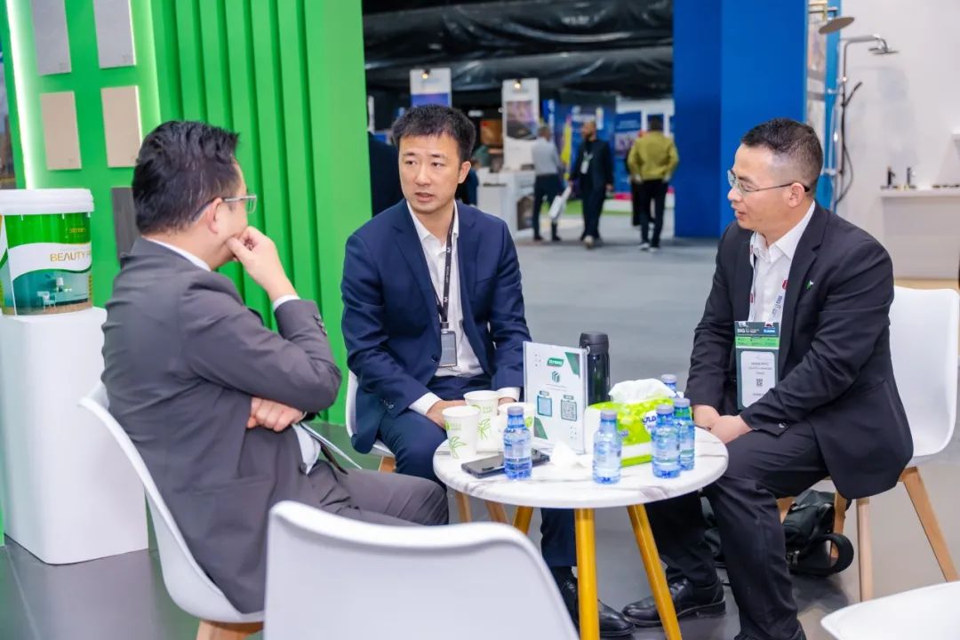 展会期间,三棵树与来自沙特、阿联酋及其他海湾国家的企业客户进行了深入交流,探讨绿色建材技术在中东市场的广泛应用与合作机会。来自沙特的合作伙伴Tony表示:“三棵树的绿色建材产品和系统解决方案完全符合我们对环保和高效建筑材料的需求,期待未来能有更多合作项目。”