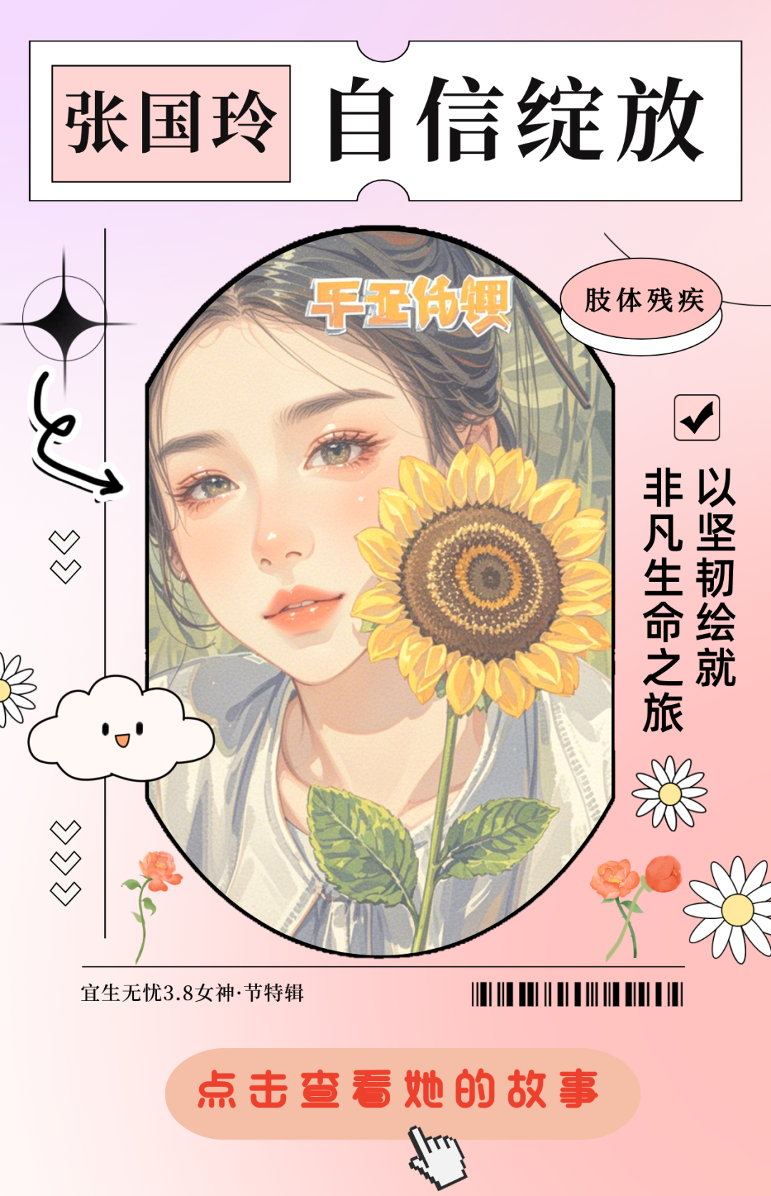 一路繁花 自信绽放 在春风中绽放,在岁月里坚韧。当三八妇女节的暖阳洒向大地,我们不仅要为每一位女性的美丽与力量喝彩,还有在命运的挑战中依然闪闪发光的女性——光芒女神。她们用顽强的毅力打破偏见,用乐观的态度拥抱生活,用实际行动证明:生命的光芒从不因身体的残缺而黯淡。